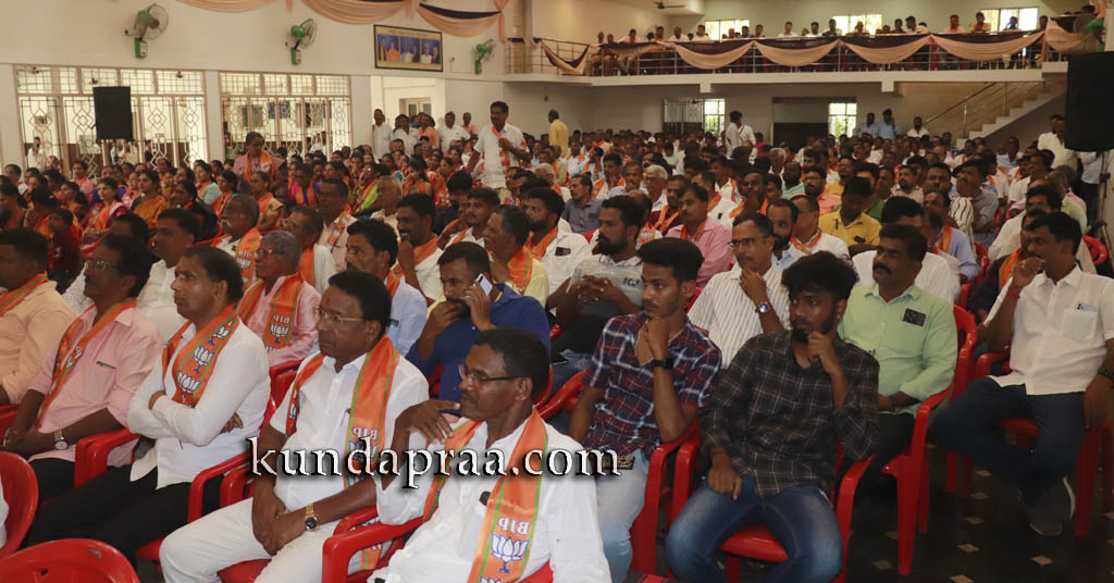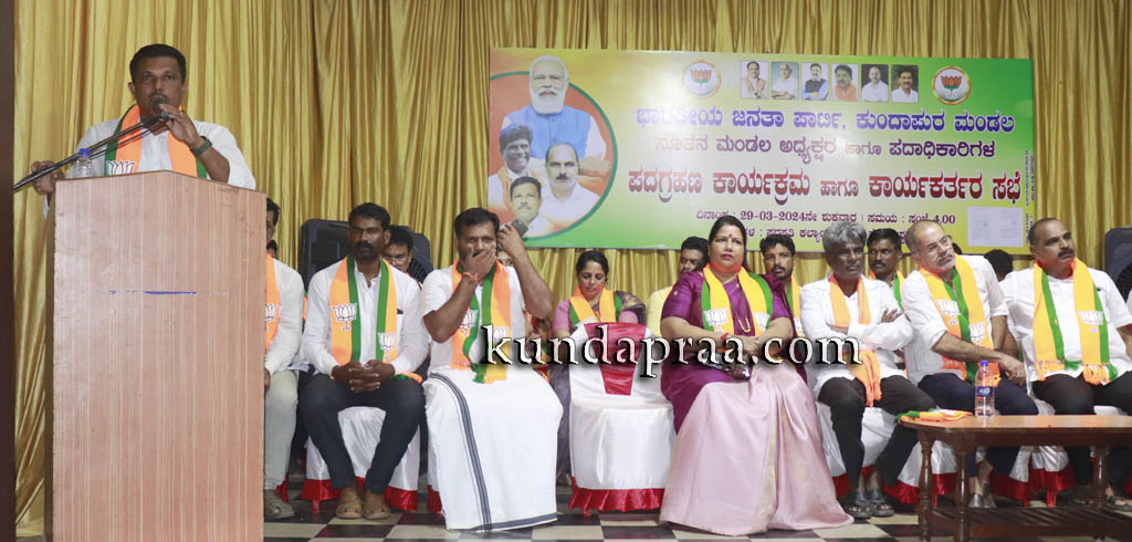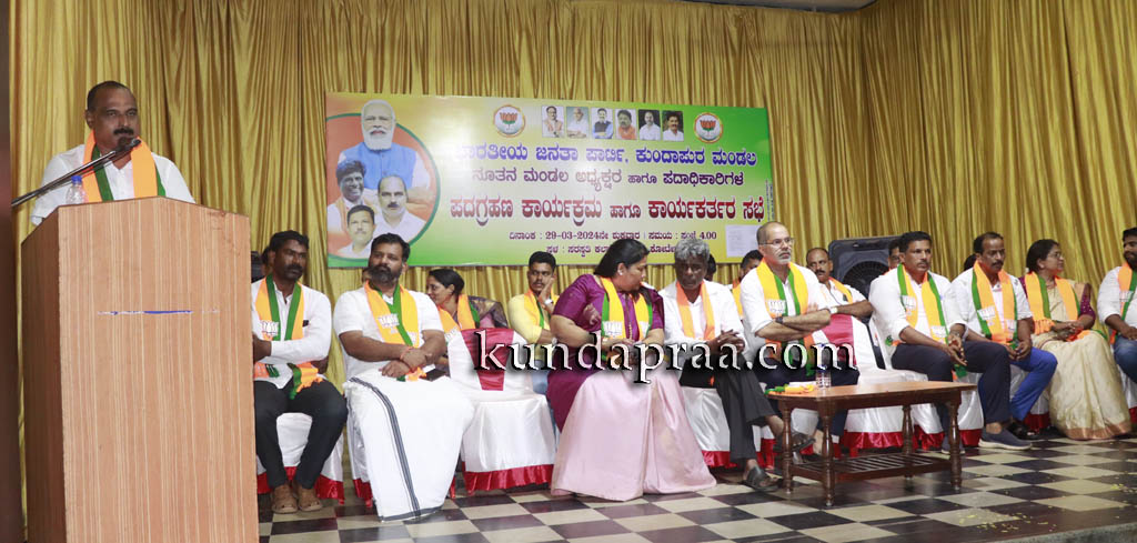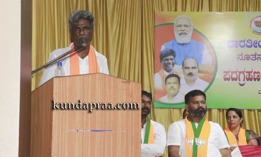 ಅವರು ಶುಕ್ರವಾರ ಕೋಟೇಶ್ವರ ಸರಸ್ವತಿ ಕಲ್ಯಾಣ ಮಂಟಪದಲ್ಲಿ ಜರುಗಿದ ಭಾರತೀಯ ಜನತಾ ಪಾರ್ಟಿ ಕುಂದಾಪುರ ಮಂಡಲದ ನೂತನ ಮಂಡಲ ಅಧ್ಯಕ್ಷರು ಹಾಗೂ ಪದಾಧಿಕಾರಿಗಳ ಪದಪ್ರದಾನ ಕಾರ್ಯಕ್ರಮ ಹಾಗೂ ಕಾರ್ಯಕರ್ತರ ಸಭೆಯನ್ನು ಉದ್ದೇಶಿಸಿ ಮಾತನಾಡಿದರು.
