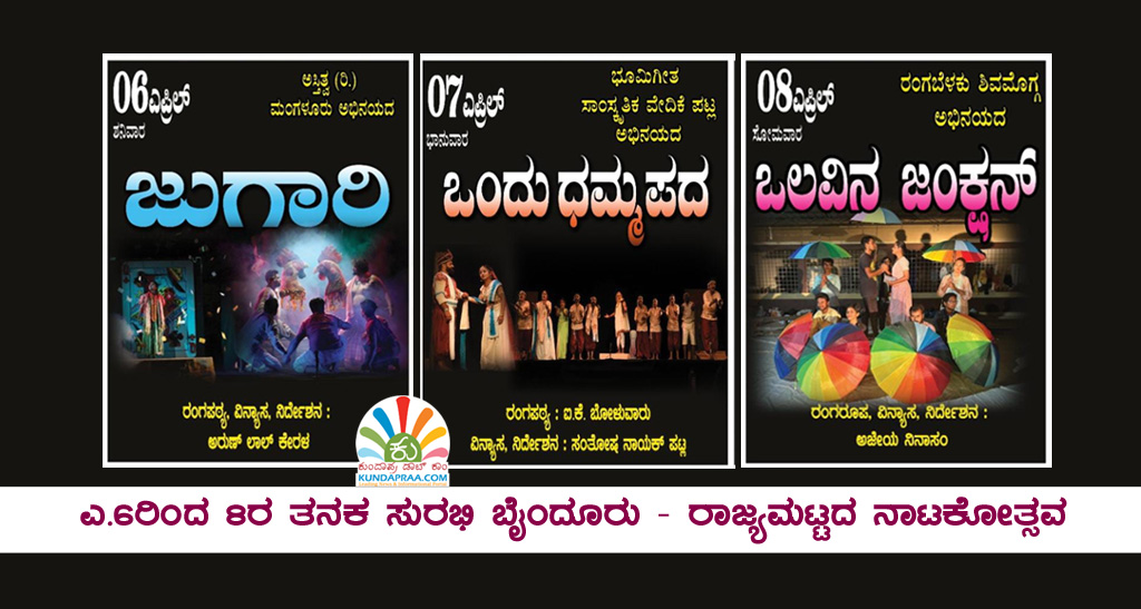 ಬೈಂದೂರು: ಸುರಭಿ ರಿ. ಬೈಂದೂರು ಆಶ್ರಯದಲ್ಲಿ ಪ್ರತಿವರ್ಷದಂತೆ ಆಯೋಜಿಸಲಾಗುವ ರಂಗಸುರಭಿ -2024 ರಾಜ್ಯ ಮಟ್ಟದ ನಾಟಕೋತ್ಸವ ಏ. 06 ರಿಂದ 08ರ ತನಕ ಬೈಂದೂರು ಶಾರದಾ ವೇದಿಕೆಯಲ್ಲಿ ಪ್ರತಿದಿನ ಸಂಜೆ 6-30ಕ್ಕೆ ಜರುಗಲಿದೆ.
