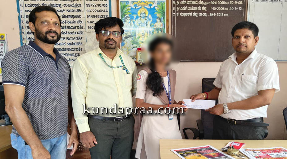 ಶಂಕರ ಪೂಜಾರಿ ಮಗಳಾದ ಶ್ರೀರಕ್ಷಾ ಇವರಿಗೆ ಸಂಘದ ಅಧ್ಯಕ್ಷರಾದ ಡಾ. ಅಂಪಾರು ನಿತ್ಯಾನಂದ ಶೆಟ್ಟಿ ಚೆಕ್ ಹಸ್ತಾಂತರಿಸಿದರು. ಈ ಸಂದರ್ಭದಲ್ಲಿ ಸಂಘದ ಉಪಾಧ್ಯಕ್ಷರಾದ ಡಾ. ಬಿ.ಬಿ ಹೆಗ್ಡೆ.ಕಾಲೇಜಿನ ಉಪ ಪ್ರಾಂಶುಪಾಲರಾದ ಡಾ. ಚೇತನ್ ಶೆಟ್ಟಿ ಕೋವಾಡಿ ಹಾಗೂ ಪ್ರಶಾಂತ್ ಕುಮಾರ್ ಶೆಟ್ಟಿ ಉಪಸ್ಥಿತರಿದ್ದರು.