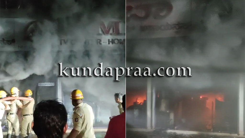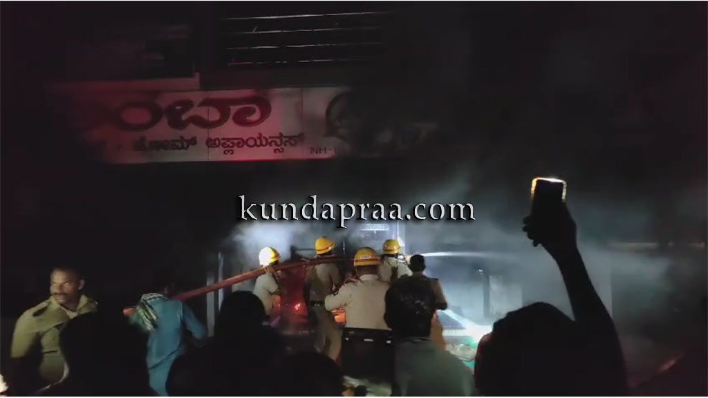 ಕುಂದಾಪುರ: ತಾಲೂಕಿನ ತ್ರಾಸಿ ರಾಷ್ಟ್ರೀಯ ಹೆದ್ದಾರಿ ಪಕ್ಕದ ಅಂಬಾ ಟಿವಿ ಸೆಂಟರ್ ಹಾಗೂ ಹೋಮ್ ಅಪ್ಲಯನ್ಸ್ಸ್ ಶೋರೂಮ್ನ ಒಳಭಾಗದಿಂದ ಬೆಂಕಿ ತಗುಲಿದ ಪರಿಣಾಮ ಲಕ್ಷಾಂತರ ರೂ. ಮೌಲ್ಯದ ವಸ್ತುಗಳು ಬೆಂಕಿಗಾಹುತಿಯಾಗಿದೆ.