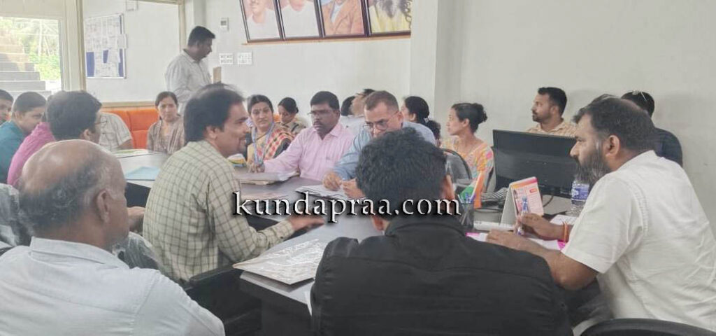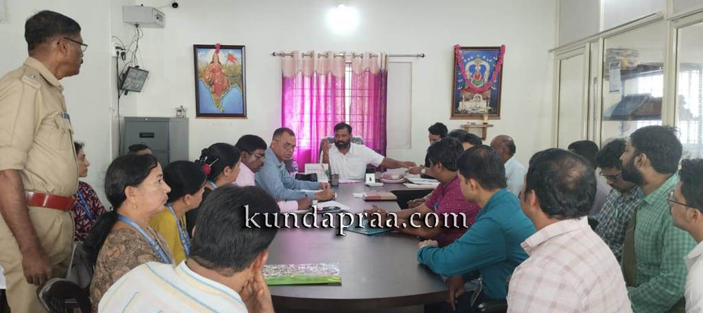 ಉಪ್ಪುಂದದ ಕಾರ್ಯಕರ್ತದಲ್ಲಿಆರೋಗ್ಯ & ಆಯುಷ್ ಇಲಾಖೆ ವೈದ್ಯಾಧಿಕಾರಿಗಳು, ಕಂದಾಯ & ಸರ್ವೇ ಇಲಾಖೆ ಹಾಗೂ ಬಿಎಸ್ಎನ್ಎಲ್ ಮತ್ತು ಕೆಪಿಸಿಎಲ್ ಇಲಾಖೆ ಪ್ರಗತಿ ಪರಿಶೀಲನೆ ಹಾಗೂ ಈ ಇಲಾಖೆಗಳಲ್ಲಿ ಅನ್ಯ ಇಲಾಖೆಗೆ ಸಂಬಂಧಿಸಿದಂತೆ ಬಾಕಿ ಇರುವ ಕಡತಗಳ ವಿಲೇವಾರಿ ಕುರಿತಾದ ಜಂಟಿ ಇಲಾಖಾ ಸಭೆ ನಡೆಸಿ ಈ ಸೂಚನೆ ನೀಡಿದರು.