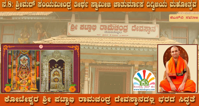 ಮನ್ಮಥನಾಮ ಸಂವತ್ಸರದ ಚಾತುರ್ಮಾಸ್ಯ ವ್ರತ ಆಚರಿಸಲು ಶ್ರೀ ಕಾಶೀಮಠಾಧಿಶ ಶ್ರೀಮತ್ ಸುಧೀಂದ್ರ ತೀರ್ಥ ಶ್ರೀಗುರುವರ್ಯರ ಪಟ್ಟ ಶಿಷ್ಯ ಶ್ರೀಮತ್ ಸಂಯಮೀಂದ್ರ ತೀರ್ಥ ಶ್ರೀ ಗುರುವರ್ಯರು ಜು. 29ರಂದು ಕೋಟೇಶ್ವರ ಶ್ರೀ ಪಟ್ಟಾಭಿ ರಾಮಚಂದ್ರ ದೇವಸ್ಥಾನಕ್ಕೆ ಆಗಮಿಸಿದ್ದರು. ಶ್ರೀಗುರುವರ್ಯರ ಅಮೃತ ಹಸ್ತಗಳಿಂದ ಜು. 31ರಂದು ಶ್ರೀ ಪಟ್ಟಾಭಿರಾಮಚಂದ್ರ ದೇವರಿಗೆ ಸಹಸ್ರ ಕುಂಭಾಭಿಷೇಕ, ಆ. 1ರಂದು ಪರಮ ಪೂಜ್ಯ ಶ್ರೀಮತ್ ಸುಕೃತೀಂದ್ರ ತೀರ್ಥ ಶ್ರೀ ಗುರುವರ್ಯರ ಪುಣ್ಯತಿಥಿ ಆಚರಣೆಯ ಬಳಿಕ ಆ. 4ರಂದು ಚಾತುರ್ಮಾಸ ವ್ರತ ಸ್ವೀಕಾರ ನಡೆದಿತ್ತು. (ಕುಂದಾಪ್ರ ಡಾಟ್ ಕಾಂ ವರದಿ)