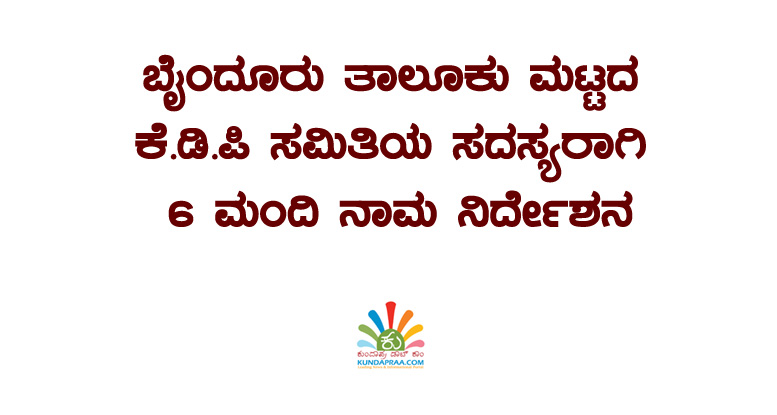 ಬೈಂದೂರು ತಾಲೂಕು ಮಟ್ಟದ ಕೆ.ಡಿ.ಪಿ ಸಮಿತಿಯ ಸದಸ್ಯರಾಗಿ 6 ಮಂದಿ ನಾಮ ನಿರ್ದೇಶನ