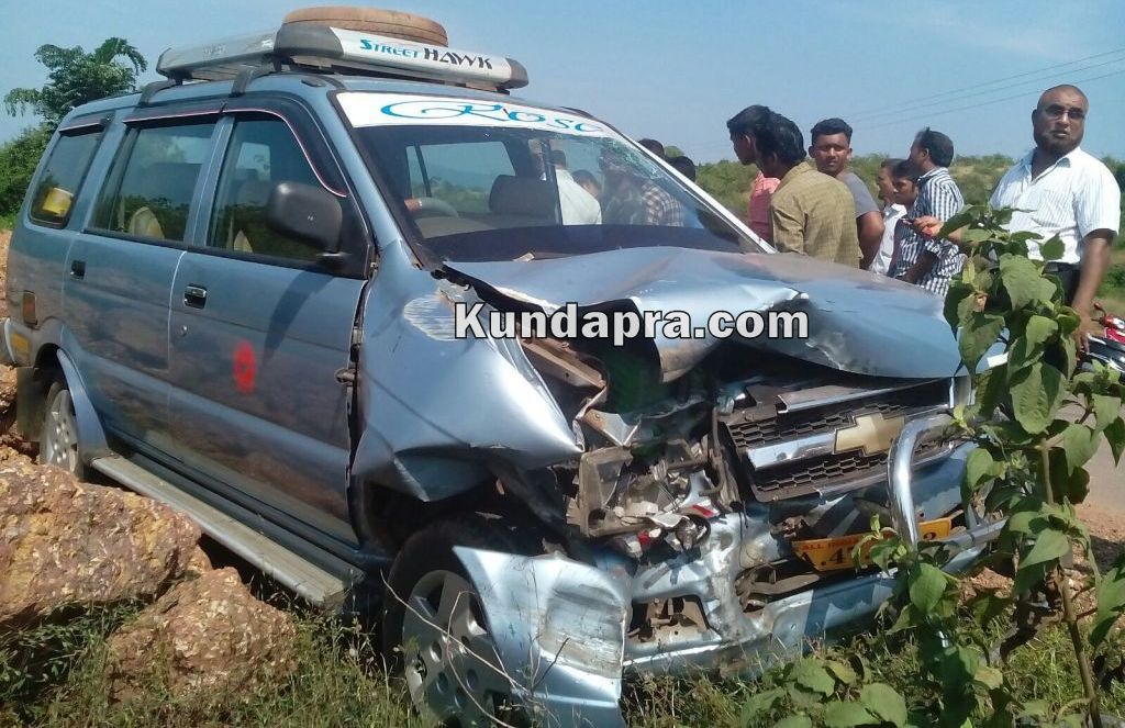 ಭಟ್ಕಳದವರಾದ 6ಮಂದಿ ಬೆಳಿಗ್ಗೆ ದುಬೈನಿಂದ ಮಂಗಳೂರು ಏರ್ ಪೋರ್ಟ್ ಗೆ ಬಂದಿಳಿದು ಅಲ್ಲಿಂದ ಇನೋವಾ ಕಾರಿನಲ್ಲಿ ಮನೆಗೆ ತೆರಳುತ್ತಿದ್ದ ವೇಳೆ ಹುಬ್ಬಳಿಯಿಂದ ಉಡುಪಿಗೆ ಕಡೆಗೆ ಸಾಗುತ್ತಿದ್ದ ಟ್ರಕ್ ಒಂದು ಡಿಕ್ಕಿ ಹೊಡೆದಿದೆ. ಢಿಕ್ಕಿ ರಭಸಕ್ಕೆ ಕಾರಿನ ಮುಂಭಾಗ ಸಂಪೂರ್ಣ ನಜ್ಜುಗುಜ್ಜಾಗಿ ಅದರಲ್ಲಿದ್ದ 6 ಮಂದಿಯಲ್ಲಿ ಒಬ್ಬ ಗಂಭೀರ ಗಾಯಗೊಂಡಿದ್ದು, ಇನ್ನುಳಿದವರಿಗೆ ಸಣ್ಣಪುಟ್ಟ ಗಾಯವಾಗಿತ್ತು. ಈ ಪೈಕಿ ಈರ್ವರನ್ನು ಉಡುಪಿಯ ಆಸ್ಪತ್ರೆಗೆ ದಾಖಲಿಸಿಲಾಗಿದೆ. ಬೈಂದೂರು ಪೊಲೀಸ್ ಠಾಣೆಯಲ್ಲಿ ಪ್ರಕರಣ ದಾಖಲಾಗಿದೆ.