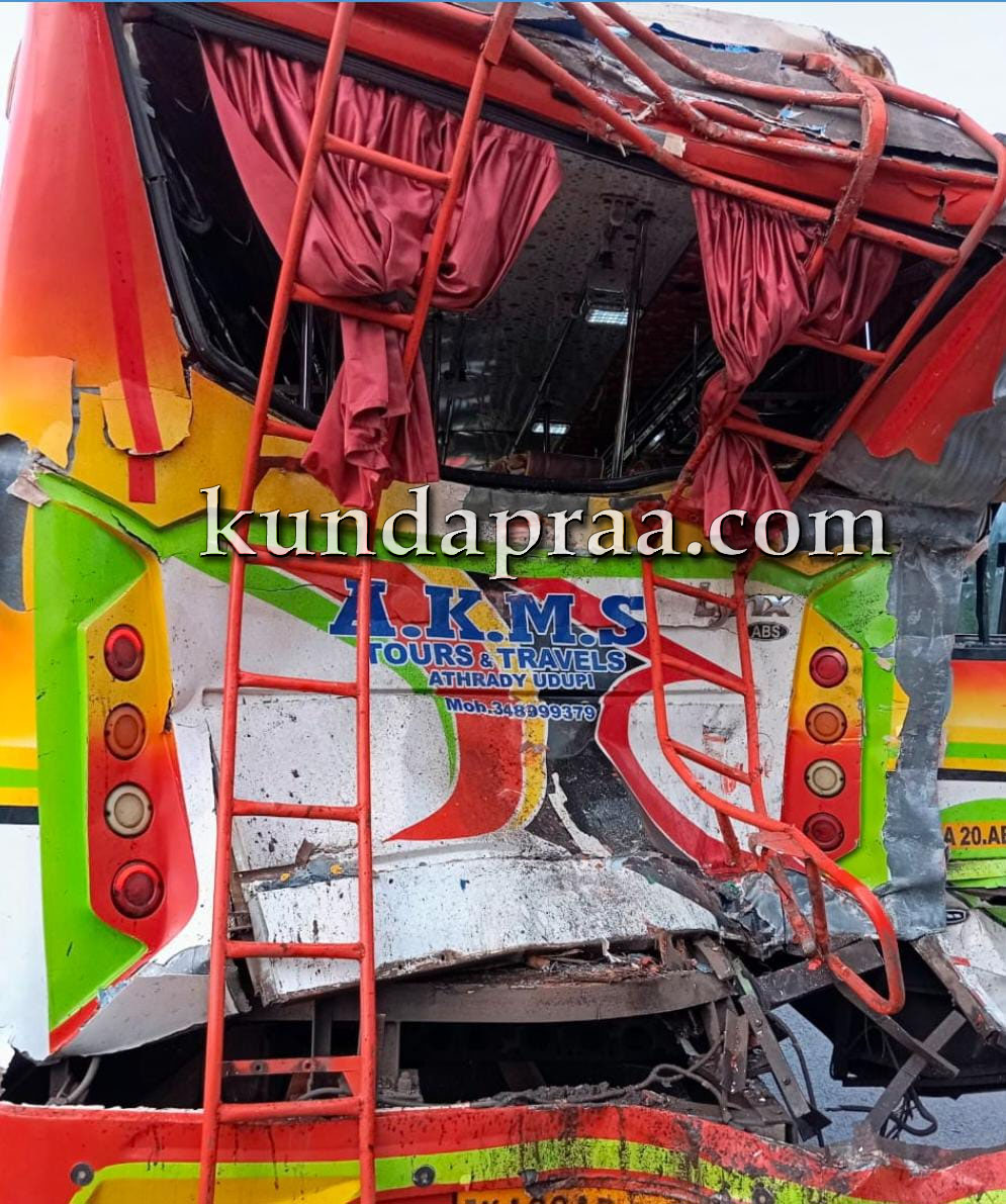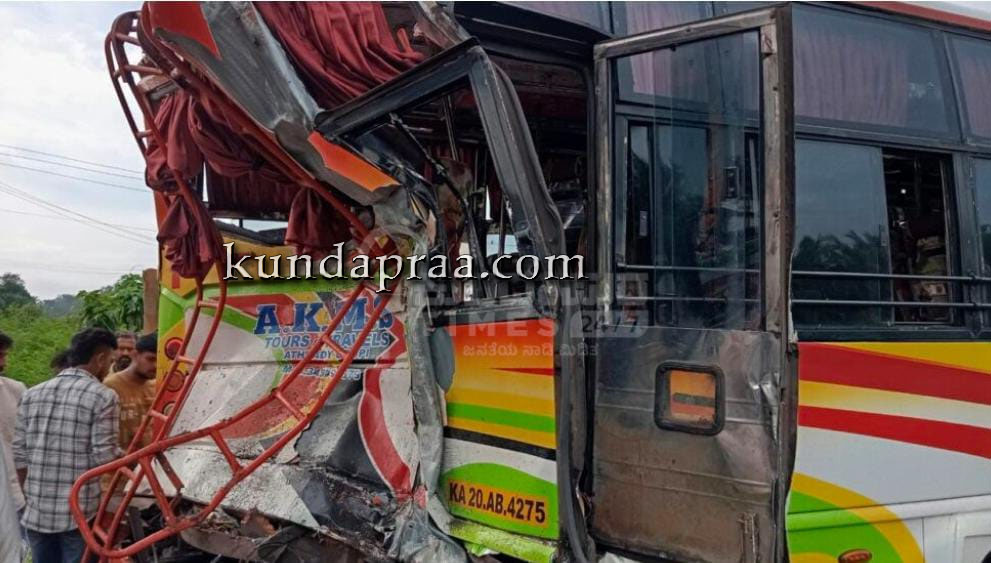 ತಲ್ಲೂರು ಪ್ರವಾಸಿ ಪೆಟ್ರೋಲ್ ಬಂಕ್ ಎದುರು ಬೈಂದೂರಿನಿಂದ ಮಂಗಳೂರಿಗೆ ತೆರಳುತ್ತಿದ್ದ ಎ.ಕೆ.ಎಂ.ಎಸ್ ಸಂಸ್ಥೆಯ ಬಸ್ಸಿಗೆ ಹಿಂಬದಿಯಿಂದ ಬರುತ್ತಿದ್ದ ಲಾರಿ ಡಿಕ್ಕಿ ಹೊಡಿದಿದ್ದು, ಬಸ್ಸಿನಲ್ಲಿದ್ದ ಹಲವು ವಿದ್ಯಾರ್ಥಿಗಳಿಗೆ ಗಾಯಗಳಾಗಿದೆ. ಅಪಘಾತದ ತೀವ್ರತೆಗೆ ಬಸ್ಸಿನ ಹಿಂಭಾಗ ಹಾಗೂ ಲಾರಿಯ ಮುಂಭಾಗ ಸಂಪೂರ್ಣ ನುಜ್ಜುಗುಜ್ಜಾಗಿದೆ. ಗಾಯಾಳುಗಳನ್ನು ಕುಂದಾಪುರದ ಸರಕಾರಿ ಹಾಗೂ ಖಾಸಗಿ ಆಸ್ಪತ್ರೆಗೆ ದಾಖಲಿಸಲಾಗಿದೆ. ಗಂಭೀರ ಗಾಯಗೊಂಡಿದ್ದ ಕುಂದಾಪುರದ ವೆಂಕಟರಮಣ ಆಂಗ್ಲ ಮಾಧ್ಯಮ ಶಾಲೆಯ ವಿದ್ಯಾರ್ಥಿ ಪ್ರಸಾದ್ ಎಂಬಾತ ಗಂಭೀರ ಗಾಯಗೊಂಡು ಮಣಿಪಾಲದ ಆಸ್ಪತ್ರೆಗೆ ದಾಖಲಾಗಿದ್ದಾನೆ. ಅದೇ ಕಾಲೇಜಿನ ವಿದ್ಯಾರ್ಥಿಗಳಾದ ಶ್ರೇಯಸ್ ಪೂಜಾರಿ, ದೀಪಶ್ರೀ, ತನುಷ್, ಪ್ರೀತಮ್, ಕೋಟ ಆಶ್ರಿತಾ ನರ್ಸಿಂಗ್ ಕಾಲೇಜಿನ ವಿದ್ಯಾರ್ಥಿನಿಯರಾದ ಅಶ್ವಿನಿ ಹಾಗೂ ಅಶ್ಮಿತಾ, ಇತರ ಪ್ರಯಾಣಿಕರಾದ ಶಿವರಾಂ, ವಿದ್ಯಾ, ಸತೀಶ್, ದೀಪ ಹಾಗೂ ಸುಕ್ರ ಎಂಬುವವರಿಗೆ ಸಣ್ಣಪುಟ್ಟ ಗಾಯಗಳಾಗಿದ್ದು ಕುಂದಾಪುರದ ಖಾಸಗಿ ಆಸ್ಪತ್ರೆಗೆ ದಾಖಲಿಸಲಾಗಿದೆ.