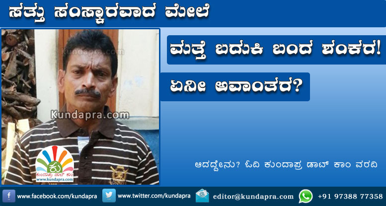 ಕುಂದಾಫುರ: ಸುರತ್ಕಲ್ ಸಮೀಪ ನಡೆದ ರಸ್ತೆ ಅಪಘಾತದಲ್ಲಿ ಮಡಿದ ವ್ಯಕ್ತಿಯ ಶವವನ್ನು ಬಾರ್ಕೂರು ಬೆಣೆಕುದ್ರುವಿಗೆ ತಂದು ಸಂಸ್ಕಾರ ಮಾಡಿ ದಿನಗಳೇ ಕಳೆದಿತ್ತು. ಆದರೆ ಮೃತಪಟ್ಟು ಸಂಸ್ಕಾರ ಮಾಡಿದ ವ್ಯಕ್ತಿ ಮತ್ತೆ ಪ್ರತ್ಯಕ್ಷವಾಗಿ ಆಶ್ಚರ್ಯ, ಭಯ ಎರಡನ್ನೂ ಹುಟ್ಟಿಸಿದ್ದಾನೆ! ಅಂದಹಾಗೆ ಬಾರ್ಕೂರು ಬೆಣ್ಣೆಕುದ್ರು ಮೂಲದ ಶಂಕರ(48) ಸತ್ತು ಬದುಕಿ ಬಂದ ಅಸಾಮಿ
