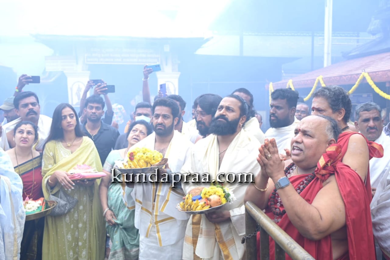 ಕುಂದಾಪುರ: ಕೊಲ್ಲೂರು ಶ್ರೀ ಮೂಕಾಂಬಿಕಾ ದೇವಾಲಯಕ್ಕೆ ತಮಿಳು ಚಿತ್ರರಂಗದ ಖ್ಯಾತ ನಟ ಜ್ಯೂನಿಯರ್ ಎನ್.ಟಿ.ಆರ್, ಕನ್ನಡ ಚಿತ್ರರಂಗದ ಖ್ಯಾತ ನಟ ರಿಷಬ್ ಶೆಟ್ಟಿ ಇನ್ನಿತರರು ಭಾನುವಾರ ಭೇಟಿ ನೀಡಿ ವಿಶೇಷ ಪೂಜೆ ಸಲ್ಲಿಸಿದರು.