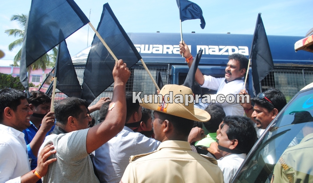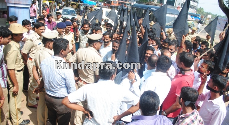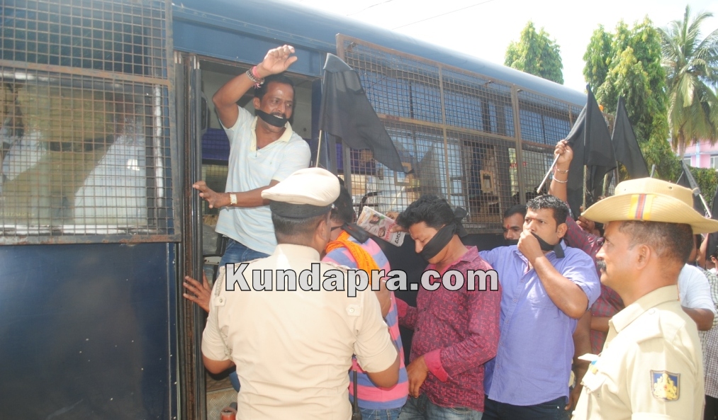 [quote font_size=”15″ bgcolor=”#ffffff” bcolor=”#000000″ arrow=”yes”]ಕಪ್ಪು ಬಾವುಟ ಪ್ರದರ್ಶಿಸಿ ಪ್ರತಿಭಟನೆ. ಪ್ರತಿಭಟನಾಕಾರರ ಬಂಧನ