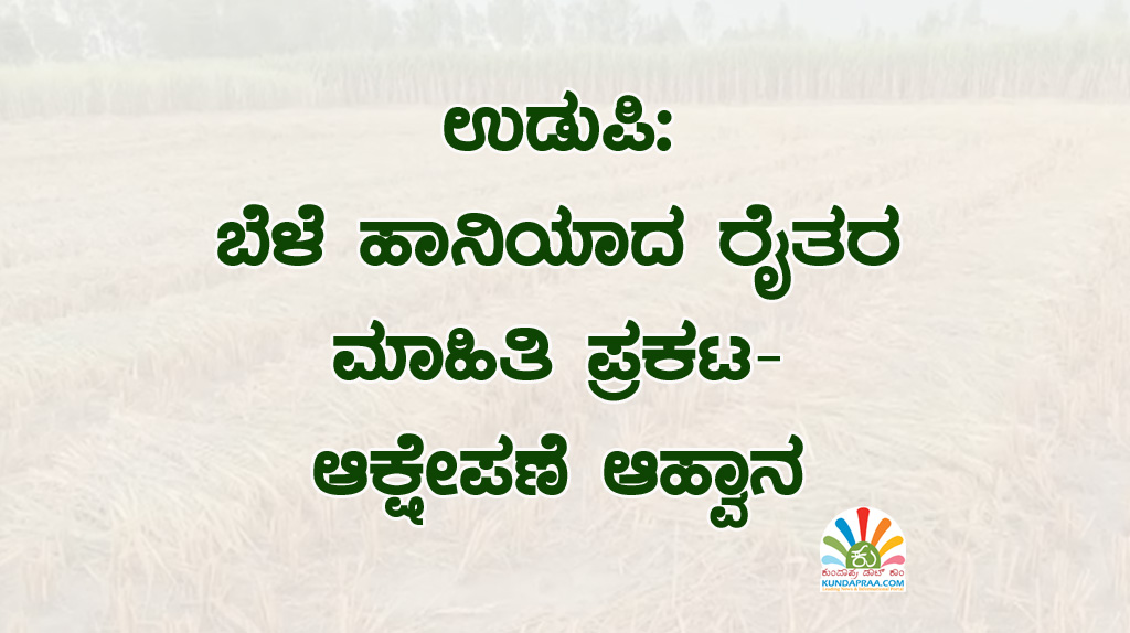 Home » ಉಡುಪಿ: ಬೆಳೆ ಹಾನಿಯಾದ ರೈತರ ಮಾಹಿತಿ ಪ್ರಕಟ – ಆಕ್ಷೇಪಣೆ ಆಹ್ವಾನ