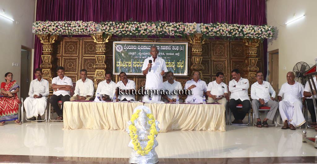 ಯಡ್ತರೆ ಬಂಟರ ಭವನದಲ್ಲಿ ಸೋಮವಾರ ನಡೆದ ಸಂಘದ ವಾರ್ಷಿಕ ಸರ್ವಸದಸ್ಯರ ಸಾಮಾನ್ಯ ಸಭೆಯ ಅಧ್ಯಕ್ಷತೆ ವಹಿಸಿ ಮಾತನಾಡಿದರು.