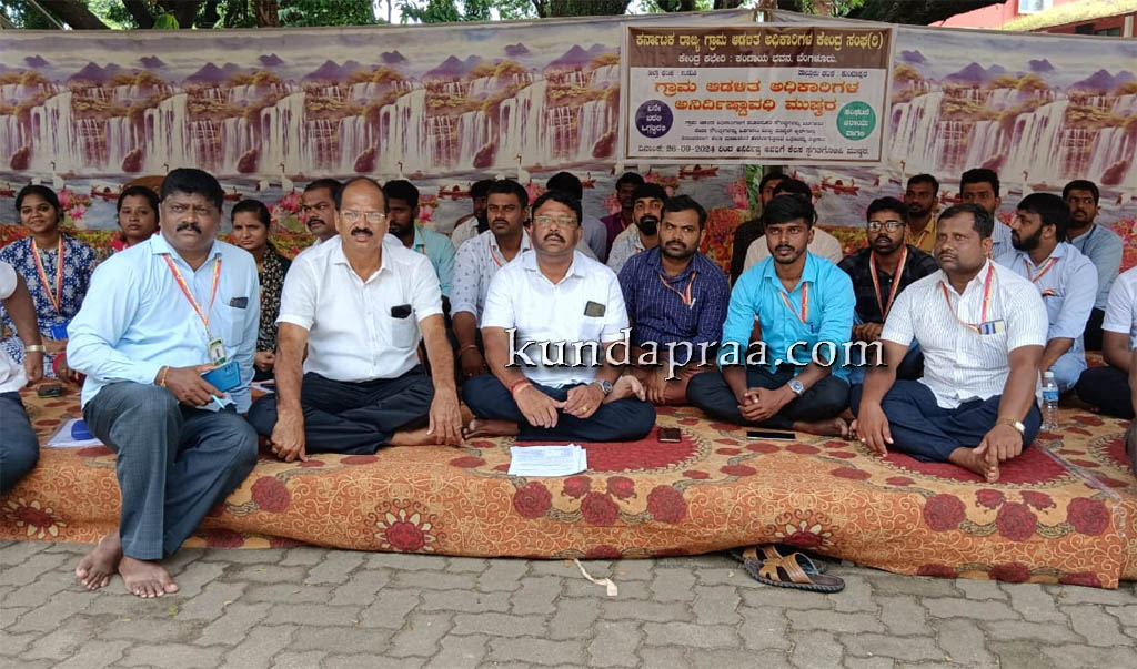 ಕುಂದಾಪುರ: ವಿವಿಧ ಬೇಡಿಕೆಗಳಿಗೆ ಆಗ್ರಹಿಸಿ ಗ್ರಾಮ ಆಡಳಿತ ಅಧಿಕಾರಿಗಳ ಅನಿರ್ದಿಷ್ಠಾವಧಿ ಪ್ರತಿಭಟನೆ