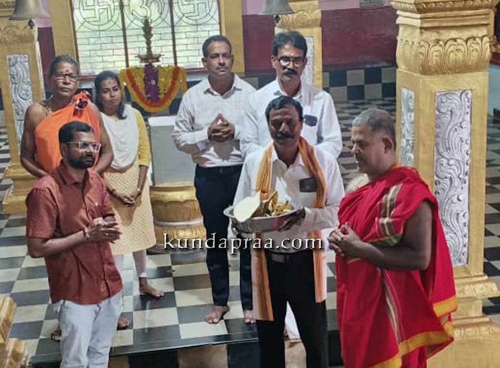 ಈ ವೇಳೆ ದೇವಸ್ಥಾನದ ಆಡಳಿತ ಮಂಡಳಿ ಅಧ್ಯಕ್ಷರಾದ ನಾಗರಾಜ ಶೆಟ್ಟಿ , ಕಾರ್ಯದರ್ಶಿ ಶಿವರಾಮ ಪೂಜಾರಿ, ಅರ್ಚಕರಾದ ಕೃಷ್ಣ ಮೂರ್ತಿ ನಾವಡ , ಸದಸ್ಯರುಗಳಾದ ನಾಗರಾಜ ಗಾಣಿಗ, ಪ್ರಸನ್ನ, ಎಸ್. ಮಣಿಕಂಠ ಬೈಂದೂರು, ಶಂಕರ, ಅಣ್ಣಪ್ಪ ಪೂಜಾರಿ ಉಪಸ್ಥಿತರಿದ್ದರು.