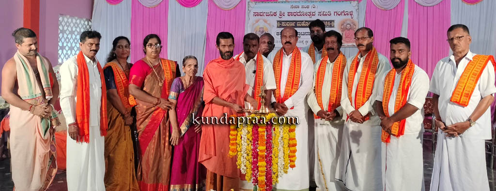 ಗಂಗೊಳ್ಳಿಯಲ್ಲಿ ಕಳೆದ 49 ವರ್ಷಗಳಿಂದ ಶ್ರೀ ಶಾರದಾ ಮಹೋತ್ಸವವನ್ನು ನಡೆಸಿ ಸಮಾಜದಲ್ಲಿ ಒಗ್ಗಟ್ಟು ಮೂಡಿಸಿ, ಧಾರ್ಮಿಕ, ಸಾಮಾಜಿಕ ಹಾಗೂ ಶೈಕ್ಷಣಿಕ ಕಾರ್ಯಕ್ರಮಗಳಲ್ಲಿ ತೊಡಗಿಸಿಕೊಂಡು ಹಿರಿಯರ ಮಾರ್ಗದರ್ಶನದಲ್ಲಿ ಮುನ್ನಡೆಯುತ್ತಿರುವ ಗಂಗೊಳ್ಳಿಯ ಶ್ರೀ ಶಾರದೋತ್ಸವ ಸಮಿತಿ ಶತಮಾನೋತ್ಸವವನ್ನು ಆಚರಿಸುವಂತಾಗಲಿ ಎಂದು ಆಶೀರ್ವದಿಸಿದರು.