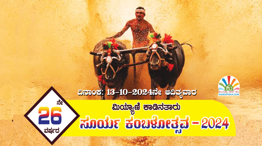 ತಾಲೂಕಿನ ಮಿಯ್ಯಾಣಿ ಕಾಡಿನತಾರುವಿನಲ್ಲಿ 26ನೇ ವರ್ಷದ ಸೂರ್ಯ ಕಂಬಳೋತ್ಸವ ಅಕ್ಟೋಬರ್ 13ರ ಭಾನುವಾರ ನಡೆಯಲಿದೆ.