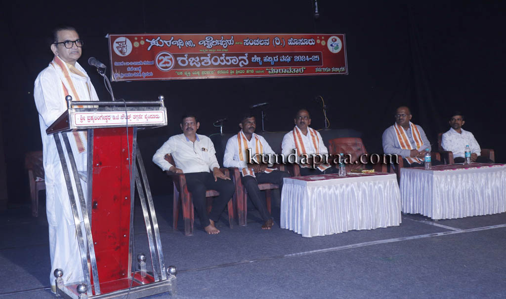 ಅವರು ಸುರಭಿ ರಿ. ಬೈಂದೂರು ಹಾಗೂ ಸಂಚಲನ ರಿ. ಬೈಂದೂರು ನೇತೃತ್ವದಲ್ಲಿ ಗುರುವಾರ ಸುರಭಿ ರಜತಯಾನದ ಅಂಗವಾಗಿ ಆಯೋಜಿಸಲಾದ ಇಡುಗುಂಜಿ ಶ್ರೀ ಮಹಾಗಣಪತಿ ಯಕ್ಷಗಾನ ಮಂಡಳಿ ಕೆರೆಮನೆ ಪ್ರಸ್ತುತಿಯ ಏಕವ್ಯಕ್ತಿ ಯಕ್ಷಗಾನ ಪ್ರದರ್ಶನದ ಪೂರ್ವದಲ್ಲಿ ನಡೆದ ಸಭಾ ಕಾರ್ಯಕ್ರಮದಲ್ಲಿ ಮಾತನಾಡಿದರು. ಕಲೆಯನ್ನು ಕೇವಲ ಮನೋರಂಜನೆಯ ಸರಕಾಗಿ ನೋಡದೇ ಅದರ ಪಾವಿತ್ರ್ಯತೆಯನ್ನು ಉಳಿಸಿಕೊಳ್ಳುವುದು ಮುಖ್ಯ. ಕಲಾವಿದ ಅಧ್ಯಯನಶೀಲನಾದಾಗ ಕಲೆ ಇನ್ನಷ್ಟು ಗಟ್ಟಿಯಾಗುತ್ತದೆ ಎಂದರು.