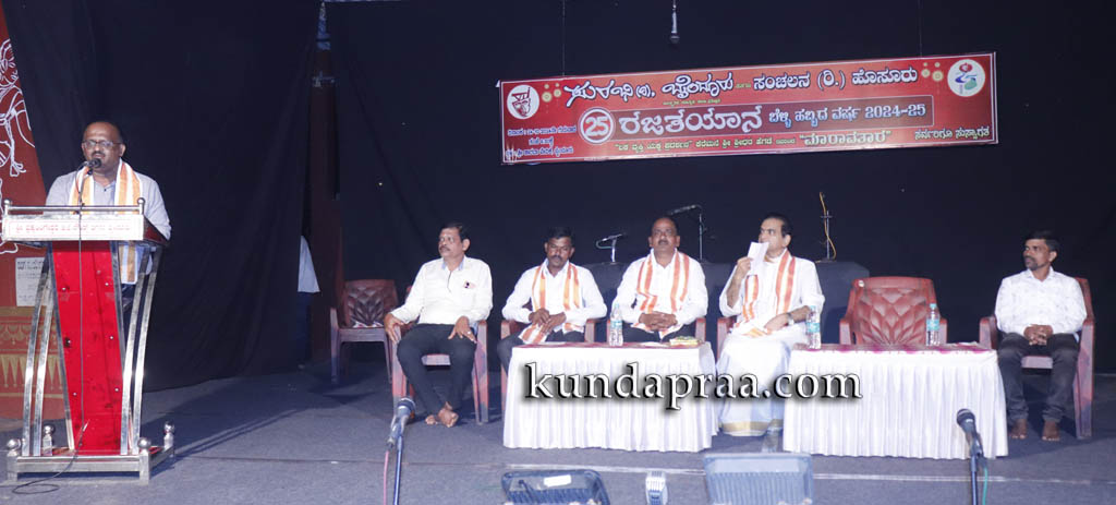 ಬೈಂದೂರು: ಯಾವುದಕ್ಕೂ ಸಮಯವಲ್ಲ ಎಂಬ ಆಧುನಿಕ ಜೀವನಶೈಲಿಯಿಂದ ಸಂಸ್ಕೃತಿ ನಾಶವಾಗುತ್ತಿದೆ. ಮೊಬೈಲ್ ಕಾರಣದಿಂದ ನಮ್ಮ ಸೃಜನಶೀಲತೆ, ತೊಡಗಿಕೊಳ್ಳುವಿಕೆ ಎಲ್ಲವೂ ಮಾಯವಾಗುತ್ತಿರುವ ಈ ಸಂದರ್ಭದ ನಡುವೆ, ಹೊರಕ್ಕೆ ಬಂದು ಕಲಾವಿದರೊಂದಿಗೆ ಮುಖಾಮುಖಿಯಾಗುವುದು ಮುಖ್ಯ ಇಡುಗುಂಜಿ ಶ್ರೀ ಮಹಾಗಣಪತಿ ಯಕ್ಷಗಾನ ಮಂಡಳಿ ನಿರ್ದೇಶಕ ಕೆರೆಮನೆ ಶಿವಾನಂದ ಹೆಗಡೆ ಹೇಳಿದರು.