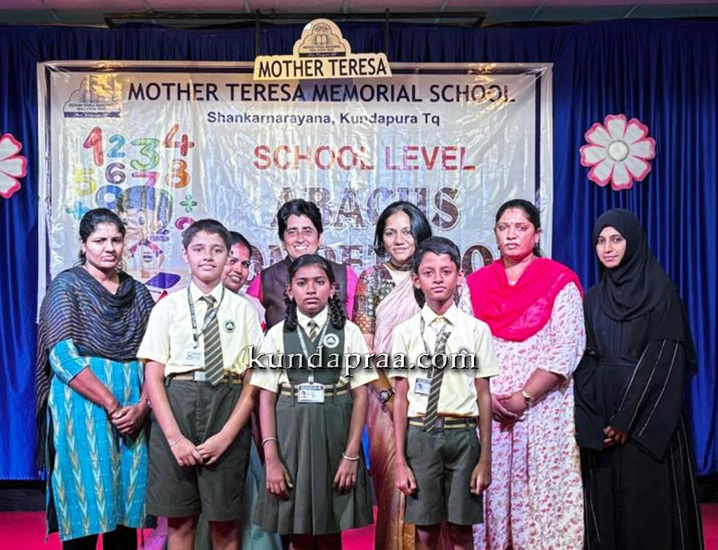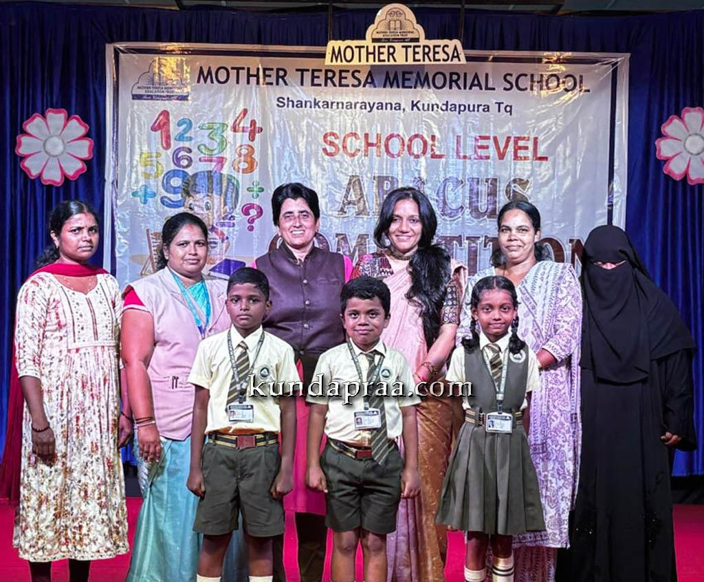 ಶಂಕರನಾರಾಯಣ: ಇಲ್ಲಿನ ಮದರ್ ತೆರೇಸಾ ಶಿಕ್ಷಣ ಸಂಸ್ಥೆಯ ಮೂರು ಮತ್ತು ನಾಲ್ಕನೇ ವಿದ್ಯಾರ್ಥಿಗಳಿಗೆ ಒಂದು ದಿನದ ಅಬಾಕಸ್ ಸ್ಪರ್ಧೆ ಆಯೋಜಿಸಲಾಗಿತ್ತು.