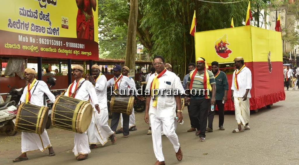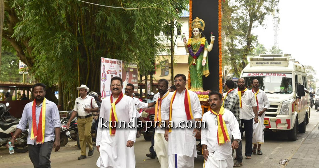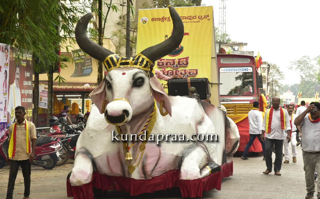 ಕಲಾಕ್ಷೇತ್ರ ಕುಂದಾಪುರ ಟ್ರಸ್ಟ್ ಇವರ ಆಶ್ರಯದಲ್ಲಿ ವಿವಿಧ ಸಂಘ ಸಂಸ್ಥೆಗಳ ಸಹಭಾಗಿತ್ವದಲ್ಲಿ ಕುಂದಾಪುರದಲ್ಲಿ ಕನ್ನಡ ಹಬ್ಬ ರಾಜ್ಯೋತ್ಸವ ಸಪ್ತಾಹದ ಅಂಗವಾಗಿ ಕುಂದಾಪುರದ ಸರಕಾರಿ ಪದವಿಪೂರ್ವ ಕಾಲೇಜಿನ ವಠಾರದಲ್ಲಿ ಗುರುವಾರ ಜರಗಿದ ಕನ್ನಡ ರಥೋತ್ಸವ ಪುರ ಮೆರವಣಿಗೆ ಕಾರ್ಯಕ್ರಮ ಉದ್ಘಾಟಿಸಿ ಅವರು ಮಾತನಾಡಿದರು.