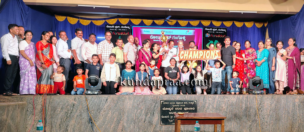 ಕುಂದಾಪುರ: ರೋಟರಿ ಕ್ಲಬ್ ಗಂಗೊಳ್ಳಿ ಆತಿಥ್ಯದಲ್ಲಿ ತಾಲೂಕಿನ ಗುಜ್ಜಾಡಿ ಸರಕಾರಿ ಹಿರಿಯ ಪ್ರಾಥಮಿಕ ಶಾಲೆಯ ರಂಗಮಂಟಪದಲ್ಲಿ ಭಾನುವಾರ ಆಯೋಜಿಸಲಾದ ರೋಟರಿ ವಲಯ – 1ರ ವಲಯ ಮಟ್ಟದ ಸಾಂಸ್ಕೃತಿಕ ಉತ್ಸವ – 2024 ʼಗಂಗಾತರಂಗʼದ ವಿವಿಧ ಸ್ಪರ್ಧೆಗಳಲ್ಲಿ ಬಹುಮಾನ ಗಳಿಸಿದ ರೋಟರಿ ಕ್ಲಬ್ ಬೈಂದೂರು ತಂಡ ವಲಯ ಚಾಂಪಿಯನ್ ಆಗಿ ಹೊರಹೊಮ್ಮಿತು.
