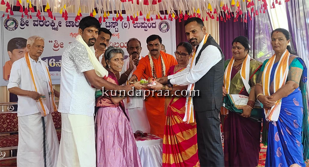 ಬೈಂದೂರು: ಶ್ರೀ ವರಲಕ್ಷ್ಮೀ ಚಾರಿಟೇಬಲ್ ಟ್ರಸ್ಟ್ ವತಿಯಿಂದ ಬಿಜೂರು ಗ್ರಾಮದ ಹೊಳೆತೋಟ ಎಂಬಲ್ಲಿ ದೊಟ್ಟಮ್ಮಜ್ಜಿ ಕುಟುಂಬಕ್ಕೆ ನಿರ್ಮಿಸಿಕೊಡಲಾದ ʼಶ್ರೀ ವರಲಕ್ಷ್ಮೀ ನಿಲಯʼ ಉಚಿತ ಮನೆಯನ್ನು ಬುಧವಾರ ಫಲಾನುಭವಿಗಳಿಗೆ ಹಸ್ತಾಂತರಿಸಲಾಯಿತು.