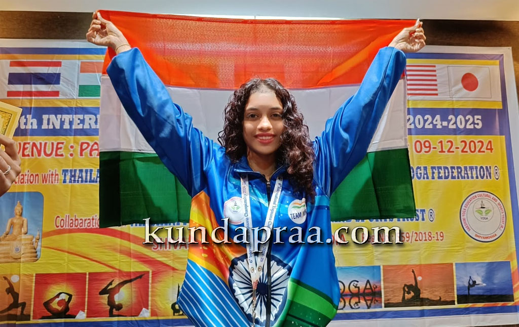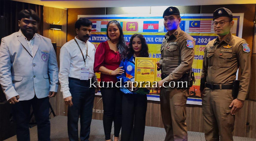 ಕುಂದಾಪುರ: ಥೈಲ್ಯಾಂಡ್ ಯೂತ್ ಯೋಗ ಅಸೋಸಿಯೇಷನ್ ಮತ್ತು ವರ್ಲ್ಡ್ ಯೂಥ್ ಯೋಗ ಫೆಡರೇಶನ್ ಹಾಗೂ ವರ್ಷಿಣಿ ಯೋಗ ಶಿಕ್ಷಣ ಮತ್ತು ಸಾಂಸ್ಕೃತಿಕ ಕ್ರೀಡಾ ಟ್ರಸ್ಟ್ ರಿ. ಶಿವಮೊಗ್ಗ ಕರ್ನಾಟಕ ಇವರ ಸಹಭಾಗಿತ್ವದಲ್ಲಿ ಸೋಮವಾರ ಥೈಲ್ಯಾಂಡ್ ದೇಶದ ಪಟ್ಟಾಯದಲ್ಲಿ 6ನೇ ವರ್ಷದ ಅಂತರಾಷ್ಟ್ರೀಯ ಯೋಗ ಸ್ಪರ್ಧೆಯು ನಡೆಯಿತು.