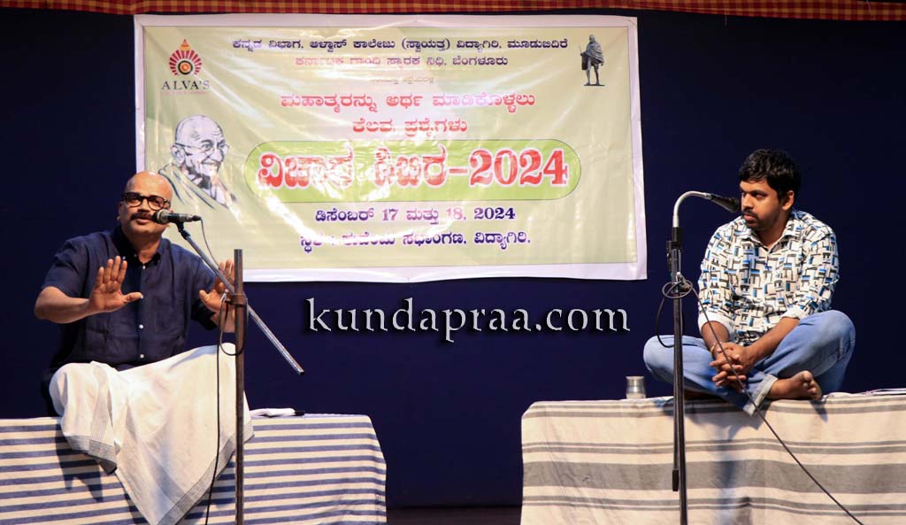 ಆಳ್ವಾಸ್ (ಸ್ವಾಯತ್ತ) ಕಾಲೇಜಿನ ಕುವೆಂಪು ಸಭಾಂಗಣದಲ್ಲಿ ಮಂಗಳವಾರ ಕನ್ನಡ ವಿಭಾಗ ಹಾಗೂ ಕರ್ನಾಟಕ ಗಾಂಧಿ ಸ್ಮಾರಕ ನಿಧಿ, ಬೆಂಗಳೂರು ಆಶ್ರಯದಲ್ಲಿ ನಡೆದ ’ಮಹಾತ್ಮರನ್ನು ಅರ್ಥ ಮಾಡಿಕೊಳ್ಳಲು ಕೆಲವು ಪ್ರಶ್ನೆಗಳು’ ವಿಚಾರ ಶಿಬಿರದ ಸಮಾರೋಪ ಸಮಾರಂಭದಲ್ಲಿ ಅವರು ಮಾತನಾಡಿದರು.
