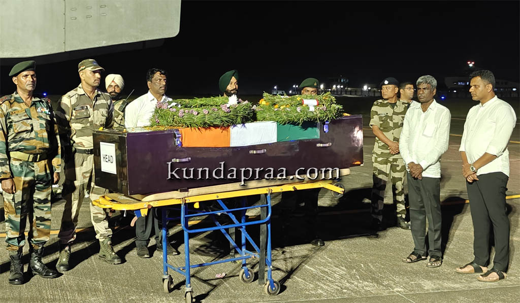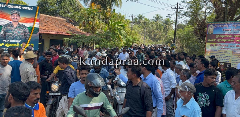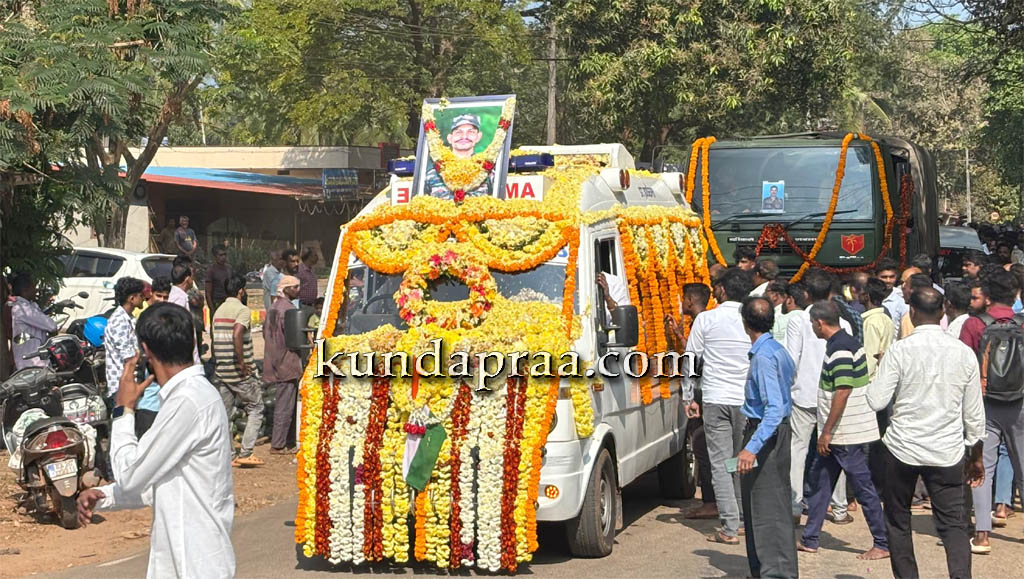 ಇದನ್ನೂ ಓದಿ:► ಹುತಾತ್ಮ ಯೋಧ ಅನೂಪ್ ಪೂಜಾರಿ ಅವರಿಗೆ ಹುಟ್ಟೂರು ಬೀಜಾಡಿಯಲ್ಲಿ ಸಕಲ ಗೌರವಗಳೊಂದಿಗೆ ಅಂತ್ಯಕ್ರಿಯೆ- https://kundapraa.com/?p=80737 .