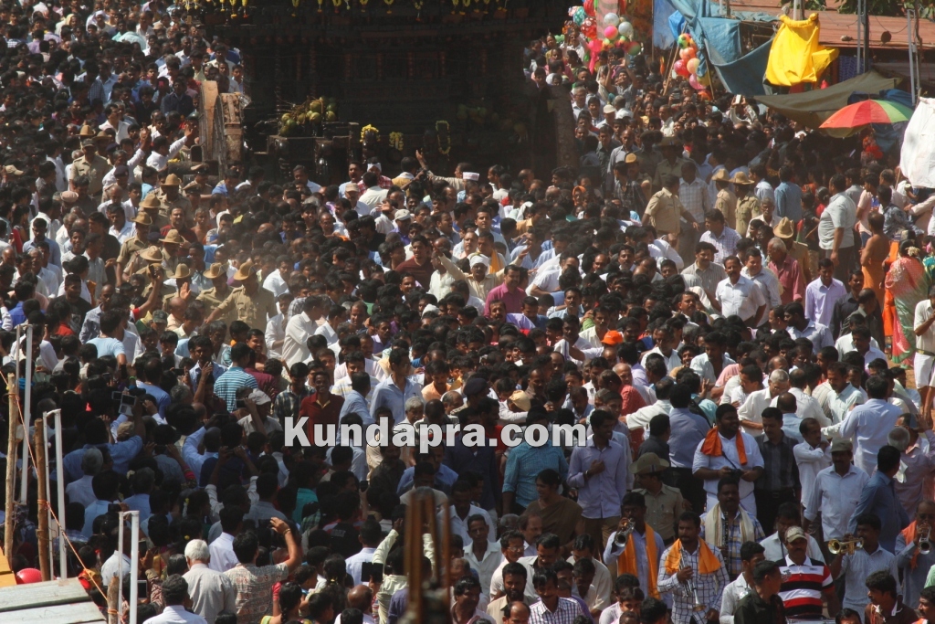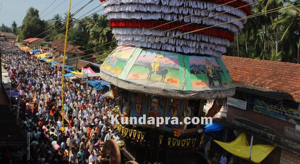 ಶ್ರೀದೇವರಿಗೆ ಶತರುದ್ರಾಭಿಷೇಕ ಇನ್ನಿತರ ಧಾರ್ಮಿಕ ವಿಧಿ ನಡೆದ ಬಳಿಕ ಸಹಸ್ರಾರು ಭಕ್ತರ ಜಯಘೋಷದೊಂದಿಗೆ ಭವ್ಯ ರಥೋತ್ಸವ ನಡೆಯಿತು. ಸಂಜೆ 5.15ಗಂಟೆಗೆ ಬಸವನಗುಡಿ ಸನ್ನಿಧಿಯಿಂದ ಶ್ರೀದೇವರಿಗೆ ಅಭಿಮುಖವಾಗಿ ರಥ ಏಳೆದ ಬಳಿಕ ರಥಾಅವರೋಹಣದ ವಿಧಿ ಸಮಾಪನಗೊಳ್ಳುತ್ತದೆ. ಅಲೆವೂರು ಶ್ರೀ ವಿಷ್ಟುಪೂರ್ತಿ ಸೇವಾ ಬಳಗದವರ ಚಂಡೆ ವಾದನ, ಹಾಗೂ ಕೆರಳ ಚಂಡೆ ವಾದನ, ಉಡುಪಿಯ ಮಂಜುಷಾ ಮಹಿಳಾ ಚಂಡೆ ಬಳಗ ರಥೋತ್ಸವದ ಮೆರಗು ಹೆಚ್ಚಿಸಿದ್ದವು. ಅಪಾರ ಸಂಖ್ಯೆಯ ಜನಸ್ತೋಮ ರಥೋತ್ಸವದಲ್ಲಿ ಪಾಲ್ಗೊಂಡು ಶ್ರೀಕೋಟಿಲಿಂಗೇಶ್ವರ ದೇವರ ದರ್ಶನ ಪಡೆದು ಪುನೀತರಾದರು. ದಾವಣಗರೆಯ ಕೆ.ವಿ. ಆನಂದರಾವ್ ಮತ್ತು ಮಕ್ಕಳಿಂದ ಉಚಿತ ಪಾನಕ ವ್ಯವಸ್ಥೆ, ಕೋಟೇಶ್ವರ ಹಿಂದೂ ಜಾಗರಣ ವೇದಿಕೆಯಿಂದ ಉಚಿತ ಮಜ್ಜಿಗೆ ವಿತರಣೆ ವ್ಯವಸ್ಥೆ ಮಾಡಲಾಗಿತ್ತು. (ಕುಂದಾಪ್ರ ಡಾಟ್ ಕಾಂ ಸುದ್ದಿ)