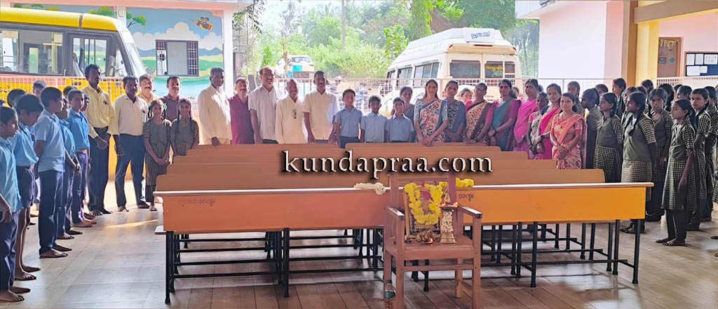 ಕುಂದಾಪುರ: ಶ್ರೀ ಕ್ಷೇತ್ರ ಧರ್ಮಸ್ಥಳ ಗ್ರಾಮಾಭಿವೃದ್ಧಿ ಯೋಜನೆ ಸಮುದಾಯ ಅಭಿವೃದ್ಧಿಯ ಜ್ಞಾನದೀಪ ಕಾರ್ಯಕ್ರಮದ ಮೂಲಕ ಶಾಲೆಗಳಿಗೆ ಬೆಂಚು ಡೆಸ್ಕ್ ಶ್ರೀ ಕ್ಷೇತ್ರ ಧರ್ಮಸ್ಥಳದ ಧರ್ಮಾಧಿಕಾರಿ ವೀರೇಂದ್ರ ಹೆಗ್ಗಡೆ ಅವರು ಮಂಜೂರು ಮಾಡಿದ್ದು, ವಂಡ್ಸೆ ಸರಕಾರಿ ಮಾದರಿ ಹಿರಿಯ ಪ್ರಾಥಮಿಕ ಶಾಲೆಗೆ ರೂ. 85,000 ಮೌಲ್ಯದ 10 ಸೆಟ್ ಬೆಂಚು ಡೆಸ್ಕ್ ವಿತರಣೆ ಮಾಡಲಾಯಿತು.
