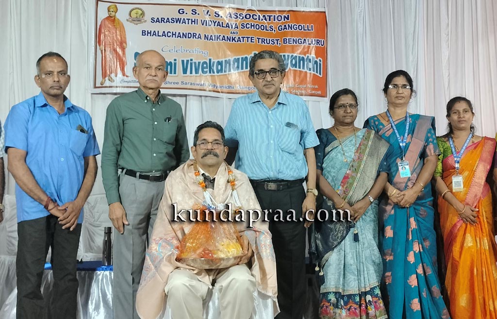 ಜಿ.ಎಸ್.ವಿ.ಎಸ್.ಅಸೋಸಿಯೇಶನ್ ಗಂಗೊಳ್ಳಿ ಸರಸ್ವತಿ ವಿದ್ಯಾಲಯ ವಿದ್ಯಾಸಂಸ್ಥೆಗಳು ಗಂಗೊಳ್ಳಿ ಮತ್ತು ಬಾಲಚಂದ್ರ ನಾಯ್ಕನಕಟ್ಟೆ ಟ್ರಸ್ಟ್ ಬೆಂಗಳೂರು ಇವರ ಜಂಟಿ ಆಶ್ರಯದಲ್ಲಿ ಶ್ರೀ ಸರಸ್ವತಿ ವಿದ್ಯಾನಿಧಿ ಗಂಗೊಳ್ಳಿ ಇವರ ಸಹಯೋಗದೊಂದಿಗೆ ಗಂಗೊಳ್ಳಿಯ ಗುಜ್ಜಾಡಿ ಗೋಪಾಲ ನಾಯಕ್ ರೋಟರಿ ಒಳಾಂಗಣ ಸಭಾಂಗಣದಲ್ಲಿ ಸೋಮವಾರ ನಡೆದ ಸ್ವಾಮಿ ವಿವೇಕಾನಂದ ಜಯಂತಿ ಕಾರ್ಯಕ್ರಮದಲ್ಲಿ ಅತಿಥಿಯಾಗಿ ಅವರು ಮಾತನಾಡಿದರು.