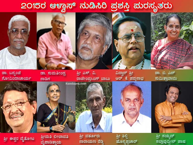 ನವೆಂಬರ್ 29 ಮಧ್ಯಾಹ್ನ ನಡೆಯುವ ಆಳ್ವಾಸ್ ನುಡಿಸಿರಿ ಸಮಾರೋಪ ಸಮಾರಂಭದಲ್ಲಿ ಪ್ರಶಸ್ತಿ ಪುರಸ್ಕೃತರನ್ನು ’ಆಳ್ವಾಸ್ ನುಡಿಸಿರಿ ಪ್ರಶಸ್ತಿ’ ಹಾಗೂ 25.೦೦೦/- ರೂ. ನಗದಿನೊಂದಿಗೆ ಗೌರವಿಸಲಾಗುವುದು ಎಂದು ಸಂಸ್ಥೆಯ ಅಧ್ಯಕ್ಷರಾದ ಡಾ. ಎಂ. ಮೋಹನ ಆಳ್ವರು ಪತ್ರಿಕಾ ಪ್ರಕಟಣೆಯಲ್ಲಿ ತಿಳಿಸಿದ್ದಾರೆ.