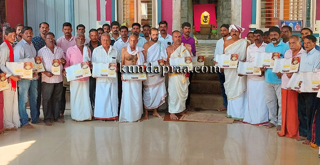 ಗಂಗೊಳ್ಳಿ: ಗುಜ್ಜಾಡಿ ಗ್ರಾಮದ ಬೆಣ್ಗೆರೆ ಶ್ರೀ ನಾಗ ದೇವಸ್ಥಾನದಲ್ಲಿ ನಾಗಮಂಡಲೋತ್ಸವದ ಸುವರ್ಣ ಮಹೋತ್ಸವದ ಪ್ರಯುಕ್ತ ನಡೆಯಲಿರುವ ಶ್ರೀ ನಾಗ ದೇವರ ಜೀರ್ಣಾಷ್ಟಬಂಧ ಪುನರ್ ಪ್ರತಿಷ್ಠಾ ಮಹೋತ್ಸವ, ಬ್ರಹ್ಮಕಲಶೋತ್ಸವ ಮತ್ತು ಅಷ್ಟಪವಿತ್ರ ನಾಗಮಂಡಲೋತ್ಸವದ ಚಪ್ಪರ ಮುಹೂರ್ತ ಹಾಗೂ ಆಮಂತ್ರಣ ಪತ್ರಿಕೆ ಬಿಡುಗಡೆ ಕಾರ್ಯಕ್ರಮ ಶುಕ್ರವಾರ ದೇವಸ್ಥಾನದಲ್ಲಿ ನಡೆಯಿತು.