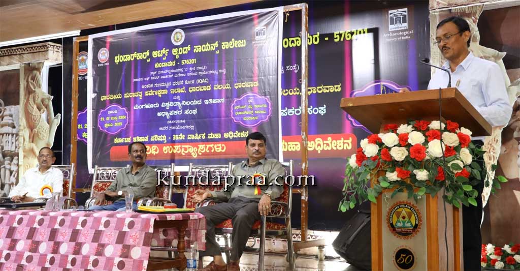 ಕುಂದಾಪುರ: ಇಲ್ಲಿನ ಭಂಡಾರ್ಕಾರ್ಸ್ ಕಾಲೇಜಿನಲ್ಲಿ ಭಾರತೀಯ ಪುರಾತತ್ವ ಸರ್ವೇಕ್ಷಣಾ ಇಲಾಖೆ, ಬೆಂಗಳೂರು ಮತ್ತು ಧಾರವಾಡ ವಲಯ, ಮಂಗಳೂರು ವಿಶ್ವವಿದ್ಯಾಲಯ ಇತಿಹಾಸ ಅಧ್ಯಾಪಕರ ಸಂಘ ಮತ್ತು ಕಾಲೇಜಿನ ಐಕ್ಯೂಎಸಿ ಇವರು ಸಹಯೋಗದಲ್ಲಿ ಆಯೋಜಿಸಿದ “ಕರ್ನಾಟಕ ಇತಿಹಾಸ ಪರಿಷತ್ತು 35ನೇ ವಾರ್ಷಿಕ ಮಹಾ ಅಧಿವೇಶನದಲ್ಲಿ ಫೆಬ್ರವರಿ 21 ರಂದು ವಿವಿಧ ದತ್ತಿ ಉಪನ್ಯಾಸಗಳನ್ನು ಪ್ರೊ. ಎಮ್. ಎನ್. ಶ್ರೀನಿವಾಸ ಅವರು ಉದ್ಘಾಟಿಸಿದರು.