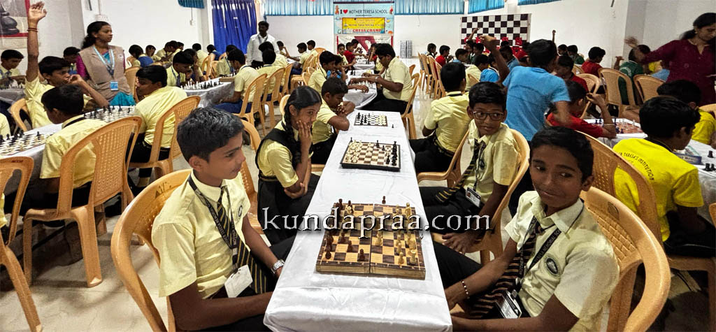ಇಲ್ಲಿನ ಮದರ್ ತೆರೇಸಾ ಮೆಮೋರಿಯಲ್ ಸ್ಕೂಲಿನಲ್ಲಿ 6 ರಿಂದ 10ನೇ ತರಗತಿ ವಿದ್ಯಾರ್ಥಿಗಳಿಗೆ  ಚೆಸ್ ಚಾಂಪ್ ನಡೆಯಿತು