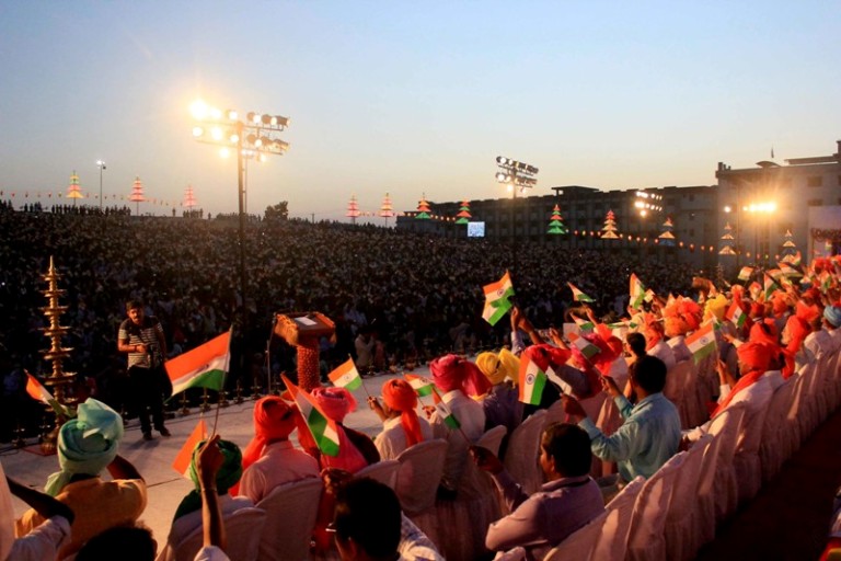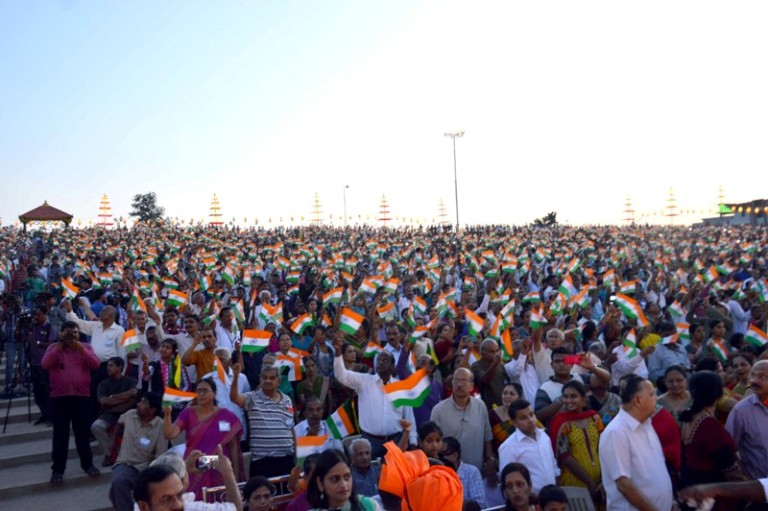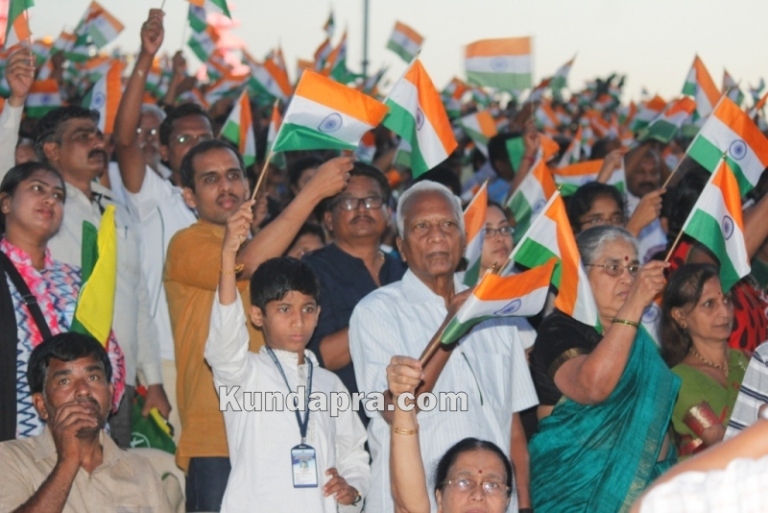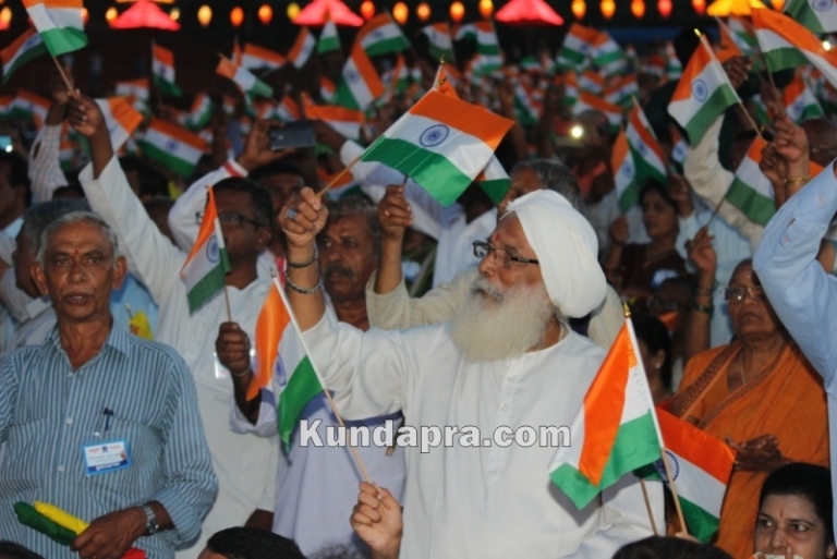 ಗೀತೆಗಳೊಂದಿಗೆ ಹಾರಾಡಿತು ತ್ರಿವಳಿ ಧ್ವಜಗಳು