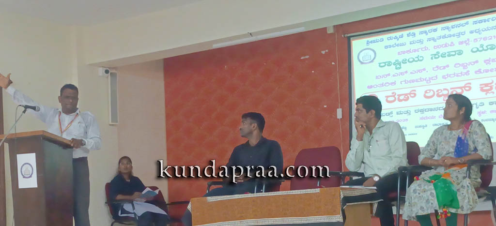 ಏಡ್ಸ್ ಪಿಡುಗಿನ ಹಿನ್ನಲೆ, ಪ್ರಸ್ತುತ ಪರಿಸ್ಥಿಯಲ್ಲಿ ಯುವ ಸಮುದಾಯ ಈ ಪಿಡುಗಿಗೆ ಗುರಿಯಾಗುವ ಸಾಧ್ಯತೆಗಳು ಮತ್ತು ಏಡ್ಸ್ ಬಗ್ಗೆ ವಹಿಸಬೇಕಾದ ಜಾಗ್ರತಿ ಬಗ್ಗೆ ಮನವರಿಕೆ ಮಾಡಿದರು. ರಕ್ತದಾನ ಮಾಡಲು ಮುಂದಾಗುವ ಮೊದಲು ನೀವು ಒಳ್ಳೆಯ ದೈಹಿಕ ಸದೃಢತೆಯ ಜೊತೆಗೆ ಉತ್ತಮ ಆರೋಗ್ಯವನ್ನು ಹೊಂದಿರಬೇಕು ಎಂದು ಹೇಳಿದರು.