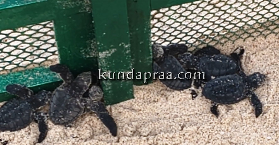 ಉಪ್ಪುಂದ ತಾರಾಪತಿಯಲ್ಲಿ ಕಡಲು ಸೇರಿದ 100ಕ್ಕೂ ಅಧಿಕ ಕಡಲಾಮೆ ಮರಿಗಳು!