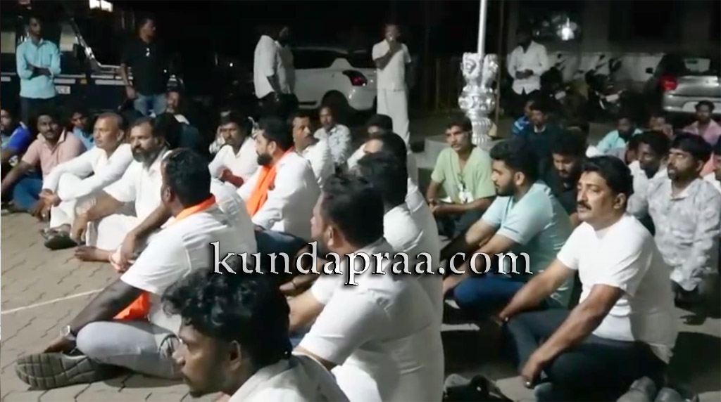 ಕುಂದಾಪುರ: ಕಳೆದ ಎರಡು ದಿನಗಳ ಹಿಂದೆ ಹಿಂದೂ ವಿದ್ಯಾರ್ಥಿನಿಯೊಬ್ಬಳ ಜೊತೆ ಮುಸ್ಲಿಂ ಯುವಕರು ಅಸಭ್ಯವಾಗಿ ವರ್ತಿಸುತ್ತಿದ್ದುದನ್ನು ಪ್ರಶ್ನಿಸಿದ್ದಕ್ಕೆ ಪ್ರಶ್ನಿಸಿದಾತನ ವಿರುದ್ಧವೇ ಪೊಲೀಸರು ಪ್ರಕರಣ ದಾಖಲಿಸಿಕೊಂಡಿದ್ದು, ಆತನನ್ನು ನ್ಯಾಯಾಂಗ ಬಂಧನಕ್ಕೆ ಒಪ್ಪಿಸಿದ್ದಾರೆ ಎಂದು ಆರೋಪಿಸಿ ಬೈಂದೂರು ಶಾಸಕ ಗುರುರಾಜ್ ಶೆಟ್ಟಿ ಗಂಟಿಹೊಳೆ ಹಾಗೂ ಹಿಂದೂ ಕಾರ್ಯಕರ್ತರು ಕುಂದಾಪುರ ಪೊಲೀಸ್ ಠಾಣೆಯ ಎದುರು ಆಹೋರಾತ್ರಿ ಧರಣಿ ಕುಳಿತ ಘಟನೆ ಗುರುವಾರ ರಾತ್ರಿ ನಡೆದಿದೆ.
