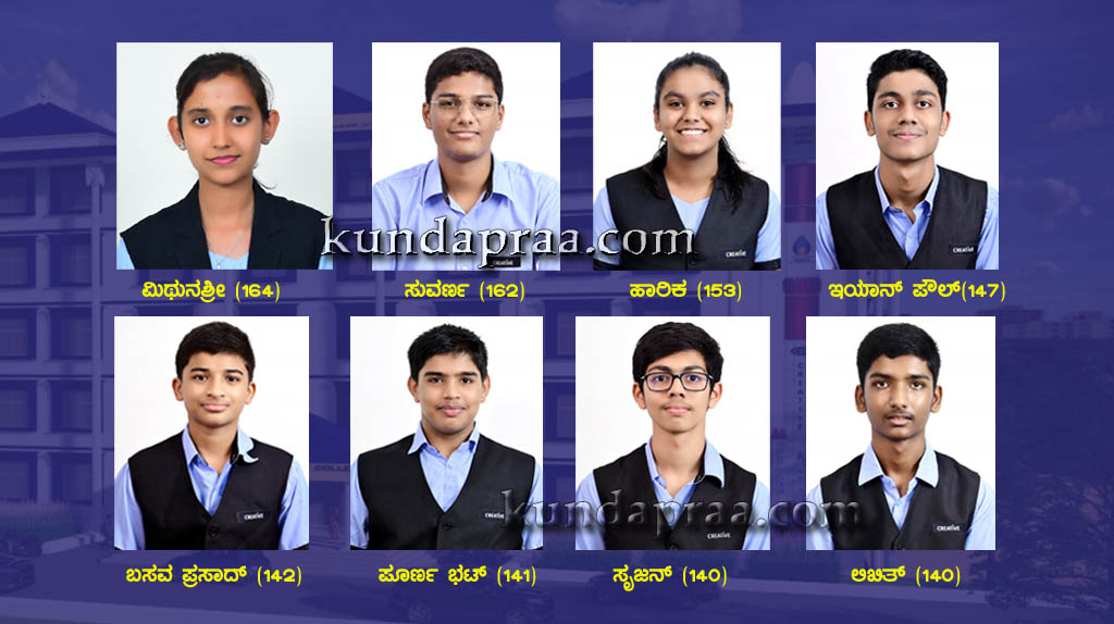 ವಿದ್ಯಾರ್ಥಿಗಳಾದ ಮಿಥುನಶ್ರೀ (164), ಸುವರ್ಣ ಹರ್ಷಲ್ ವೈ (162), ಹಾರಿಕ ಗೌಡ ಆರ್. ಬಿ. (153), ಇಯಾನ್ ಪೌಲ್(147), ಬಸವ ಪ್ರಸಾದ್ ಕಾಜಿ(142), ಪೂರ್ಣ ಭಟ್ ಕೆ. ಎಲ್(141), ಸೃಜನ್ ಎಸ್. ಭಟ್(140), ಲಿಖಿತ್ ರೆಡ್ಡಿ ಎಚ್. ಎಂ. (140), ರಕ್ಷಿತಾ ಆರ್.ಕಾಮತ್(135), ರೇಷ್ಮಾ ಜಿ.ಕೆ.(135) ಅಭಿಷೇಕ್ ಉಮಾದಿ(131), ಕೀರ್ತಿ ಪೈ(129), ಶ್ರದ್ಧಾ ಪಿ.ಅಂಗಡಿ(125), ಎಚ್.ಎ ಅದನ್ ಬೆಳ್ಳಿಯಪ್ಪ(125), ಪ್ರಭವ್ ಜಿ. ಶೆಟ್ಟಿ(121), ಆರ್ಯ ಬಿ.ವಿ(120), ಅಪ್ಸರ್ ಪಾಹಿಮ್(120), ಧನ್ಯಶ್ರೀ ಶೆಟ್ಟಿ(119), ಸೌರವ್ ರವಿ ಶೇಟ್(116), ಪೃಥ್ವಿ ಜಾಜಿ(115), ಸಾತ್ವಿಕ್ ಯು.ಆರ್(114), ಕನಿಷ್ಕ ಸೇನ್ ಎಸ್(113), ಸಪಲಿಗ ಸ್ವಾತಿ ತಿಮ್ಮಪ್ಪ(111), ಶ್ರೀಕಾರ್ ದುಬೀರ(111), ವಜ್ರ ಗೌಡ(110), ಶ್ರೇಯಸ್ ವಿ.ರೆಡ್ಡಿ(110), ಅನನ್ಯ ರಾಜೇಶ್(109, ಬಿಪಿನ್ ಗೌಡ(108), ಎಸ್. ನಂದನ್(106), ವಿ.ಎಸ್. ವೈಭವ್(105), ಕೆ.ವೈ ದಿಲೀಪ್(103), ಆಡ್ಲಿನ್ ಥೋಮಸ್(102), ಮೆಲಿಶ ಶೈನಿ ಪೆರ್ನಾಂಡಿಸ್(102), ತೇಜಸ್ ದೀಪಕ್ ಭಟ್(101), ವೇದಿಕ ವಸಂತ್ ಶೆಟ್ಟಿ(100), ಪ್ರೀತಮ್.ಎಸ್(100), ಪೂರ್ಣೇಶ್(100), ಗೌತಮ್ ಗಾಯಕವಾಡ(100), ಪ್ರೀತಮ್ ಉದಯ್ ಹೆಗ್ಡೆ(100), ಪ್ರಥಮ್ ವಿ. ಶೆಟ್ಟಿ(100), ರವಿ ತೇಜಸ್ ಆರ್. (100), ಸುಹಾಶ್ ಡಿ.(100) ಅಂಕಗಳಿಸಿದ್ದಾರೆ.