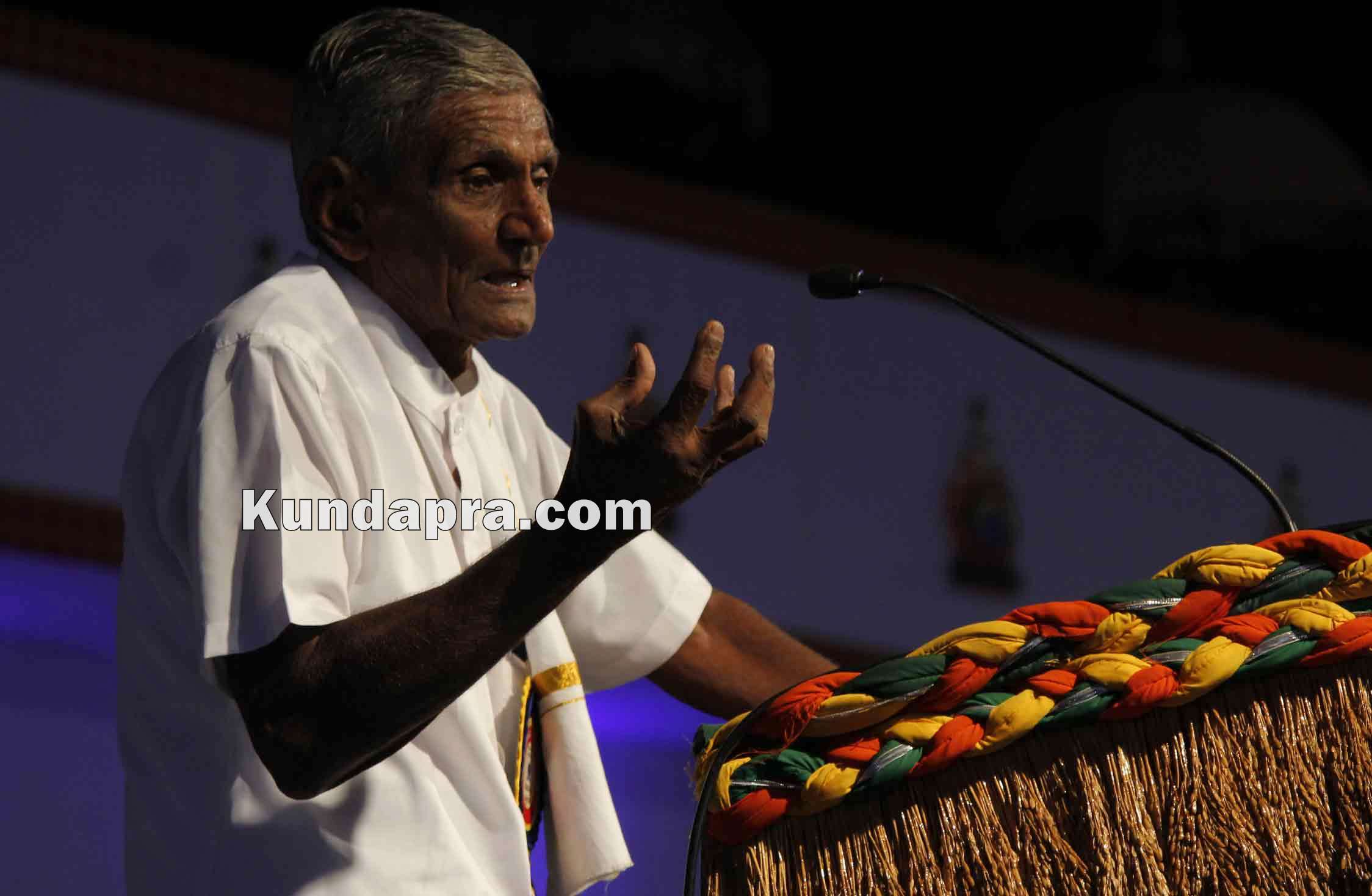 ಆಳ್ವಾಸ್ ನುಡಿಸಿರಿಯ ರತ್ನಾಕರವರ್ಣಿ ವೇದಿಕೆಯ ನಾಡೋಜ ಕಯ್ಯಾರ ಕಿಂಞಣ್ಣ ರೈ ಸಭಾಂಗಣದಲ್ಲಿ ‘ಕೃಷಿ: ಹೊಸತನದ ಹುಡುಕಾಟ’ ಎಂಬ ವಿಷಯದಲ್ಲಿ ಮಾತನಾಡಿದರು. ವ್ಯವಸಾಯದಲ್ಲಿ ಮರಗಿಡ, ದನಕರು, ತಿಪ್ಪೆಗುಂಡಿ ಎಲ್ಲವೂ ಬೇಕೆಬೇಕು. ಉತ್ತಮ ಕೃಷಿಗೆ ರಾಸಾಯನಿಕ ಗೊಬ್ಬರಗಳ ಅವಶ್ಯಕತೆ ಇಲ್ಲವೇ ಇಲ್ಲ. ಮಣ್ಣಿನಲ್ಲಿನ ಸೂಕ್ಷ್ಮಜೀವಿಗಳನ್ನು ಉಳಿಸಿಕೊಂಡರೆ ಸಾಕು. ಎಕರೆಗೆ ಕನಿಷ್ಠ ೨೫ ವಿವಿಧ ಜಾತಿ ಮರ, ಒಂದು ದನವಿದ್ದರೇ ಅವರಷ್ಟು ಶ್ರೀಮಂತ ಮತ್ತೊಬ್ಬರಿಲ್ಲ.