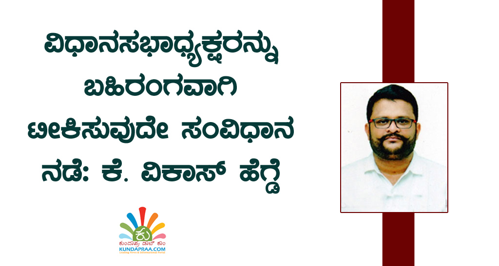 ಕುಂದಾಪುರ: ಭಾರತದ ಪವಿತ್ರವಾದ ಸಂವಿಧಾನದ ಅಡಿಯಲ್ಲಿ ಸಾರ್ವತ್ರಿಕ ಚುನಾವಣೆಯಲ್ಲಿ ಸ್ಪರ್ಧೆ ಮಾಡಿ, ಗೆದ್ದು ಶಾಸಕರಾಗಿ ಸಂವಿಧಾನದಲ್ಲಿ ಹೇಳಿರುವ ಕರ್ತವ್ಯಗಳನ್ನು ಪಾಲಿಸುವುದಾಗಿ ಸಂವಿಧಾನದ ಹೆಸರಿನಲ್ಲಿಯೇ ಪ್ರಮಾಣವಚನ ಸ್ವೀಕರಿಸಿರುವ ಉಡುಪಿ ಶಾಸಕ ಯಶ್ಪಾಲ್ ಸುವರ್ಣ ಅವರು, ಸಂವಿಧಾನದಲ್ಲಿ ಉಲ್ಲೇಖವಾಗಿರುವ ಅತ್ಯಂತ ಪವಿತ್ರ ಹಾಗೂ ಅತ್ಯಂತ ಗೌರವಾನ್ವಿತ ಹುದ್ದೆಯಾದ ವಿಧಾನಸಭೆಯ ಸಭಾಧ್ಯಕ್ಷದ ತೀರ್ಮಾನಗಳನ್ನೆ ಸಾರ್ವಜನಿಕವಾಗಿ ಪ್ರಶ್ನಿಸುವ ಮೂಲಕ ಅಸಂವಿಧಾನಿಕ ನಡವಳಿಕೆಯನ್ನು ತೋರುತ್ತಿರುವುದು ಖಂಡನೀಯ ಎಂದು ಜಿಲ್ಲಾ ಕಾಂಗ್ರೆಸ್ ವಕ್ತಾರ ಕೆ. ವಿಕಾಸ್ ಹೆಗ್ಡೆ ಪತ್ರಿಕಾ ಹೇಳಿಕೆಯಲ್ಲಿ ತಿಳಿಸಿದ್ದಾರೆ.