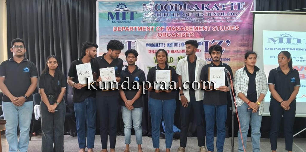 ಕುಂದಾಪುರ: ಮೂಡ್ಲಕಟ್ಟೆ ತಾಂತ್ರಿಕ ವಿದ್ಯಾಲಯ ಇಲ್ಲಿನ ಎಂ.ಬಿ.ಎ ವಿಭಾಗದ ವತಿಯಿಂದ ವಿಶ್ವ ತಂಬಾಕು ನಿಷೇಧ ದಿನವನ್ನು ಆಚರಿಸಿದರು.