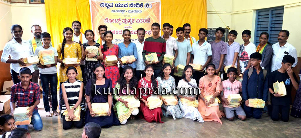 ಕೋಟ: ಬಿಲ್ಲವ ಯುವ ವೇದಿಕೆ ಪಾಂಡೇಶ್ವರ ಮೂಡಹಡು ಇವರ ನೇತೃತ್ವದಲ್ಲಿ ಕಲ್ಪತರು ಮಹಿಳಾ ಸ್ವ ಸಹಾಯ ಗುಂಪಿನ ಸದಸ್ಯರ ಮಕ್ಕಳಿಗೆ 10ನೇ ವರ್ಷದ ಪ್ರತಿಭಾ ಪುರಸ್ಕಾರ ಹಾಗೂ ನೋಟ್ ಪುಸ್ತಕ ವಿತರಣೆ ಕಾರ್ಯಕ್ರಮವು ಪಾಂಡೇಶ್ವರ ಶಾಲೆಯಲ್ಲಿ ಜರುಗಿತು.