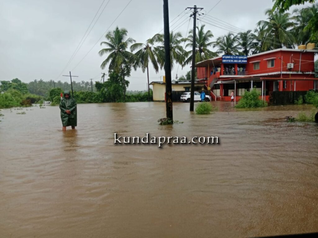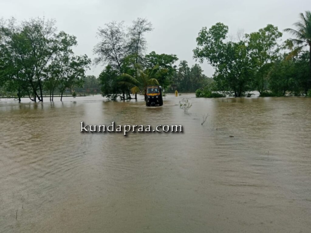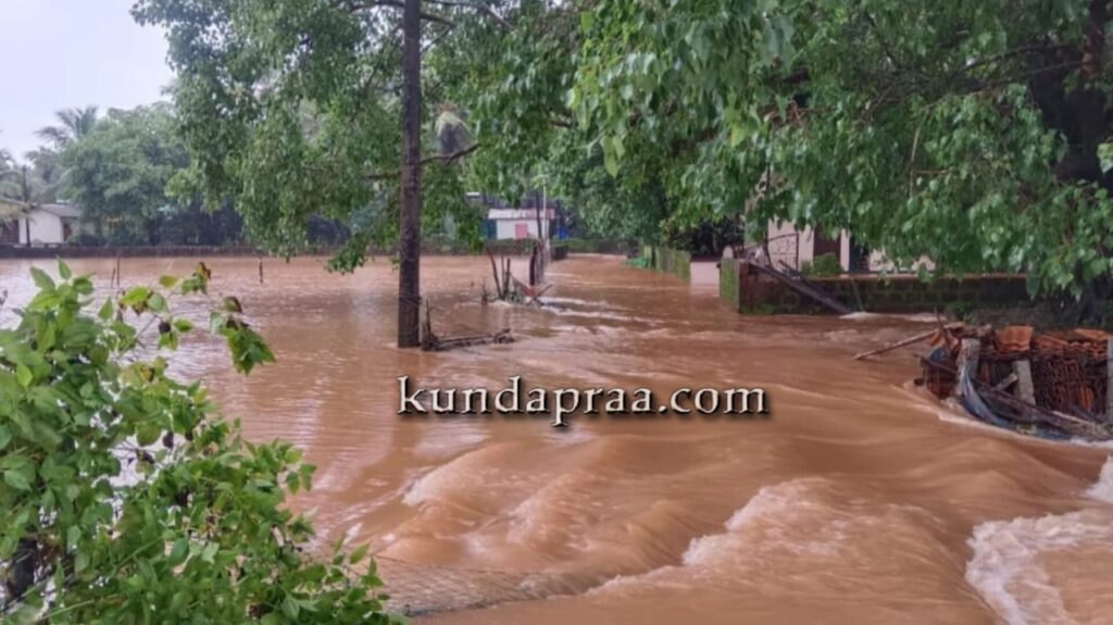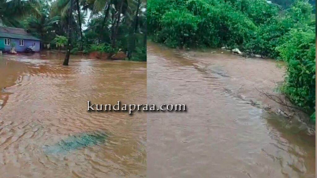 ಪಶ್ಚಿಮ ಘಟ್ಟ ಪ್ರದೇಶದಲ್ಲಿ ರಾತ್ರಿಯಿಡೀ ಭಾರೀ ಮಳೆಯಿಂದಾಗಿ ಸೌಪರ್ಣಿಕಾ ನದಿ ಪಾತ್ರದ ನಾವುಂದ ಗ್ರಾಮದ ಸಾಲ್ಬುಡ, ಅರೆಹೊಳೆ, ನಾಡ ಗ್ರಾಮದ ಚಿಕ್ಕಳ್ಳಿ, ಪಡುಕೋಣೆ ಸೇರಿದಂತೆ ಹಲವು ಭಾಗಗಳಲ್ಲಿ ನೆರೆ ಬಂದಿದ್ದು ಪರಿಣಾಮ ಮರವಂತೆ – ಪಡುಕೋಣೆ ರಸ್ತೆ ಜಲಾವೃತಗೊಂಡಿದೆ. ಹೆರಂಜಾಲು, ಶಿರೂರು ಗ್ರಾಮಗಳಲ್ಲಿಯೂ ನೆರೆ ಕಾಣಿಸಿಕೊಂಡಿದೆ. ಎಡಮಾವಿನ ಹೊಳೆ ಪಾತ್ರದ ಹೆರಂಜಾಲು, ಹಳಗೇರಿಯಲ್ಲಿ ಕೃಷಿ ಭೂಮಿಗಳು ಜಲಾವೃತಗೊಂಡಿದೆ. ಸುಮನಾವತಿ ನದಿ ಪಾತ್ರದ ಬಿಜೂರು, ಯಡ್ತರೆ, ತಗ್ಗರ್ಸೆಯ ಹಲವೆಡೆ ಜಲಾವೃತಗೊಂಡು ಮನೆಗಳಿಗೂ ನೆರೆ ನೀರು ನುಗ್ಗಿದೆ. ಮಯ್ಯಾಡಿಯಲ್ಲಿರುವ ನ್ಯಾಯಾಲಯದ ಸಂಕೀರ್ಣವೂ ಜಲಾವೃತಗೊಂಡಿದೆ. ಎಳಜಿತದ ಭಾಗದಲ್ಲಿಯೂ ನದಿಗಳು ಉಕ್ಕಿ ಹರಿದು ನೆರೆ ಭೀತಿ ಉಂಟಾಗಿದೆ. ತಗ್ಗರ್ಸೆ – ಮಯ್ಯಾಡಿ ಭಾಗದಲ್ಲಿ ರಸ್ತೆ ಮೇಲೆಯೇ ನೀರು ಹರಿದಿದ್ದರಿಂದ ವಾಹನ ಸವಾರರು ಪರದಾಡುವಂತಾಯಿತು.