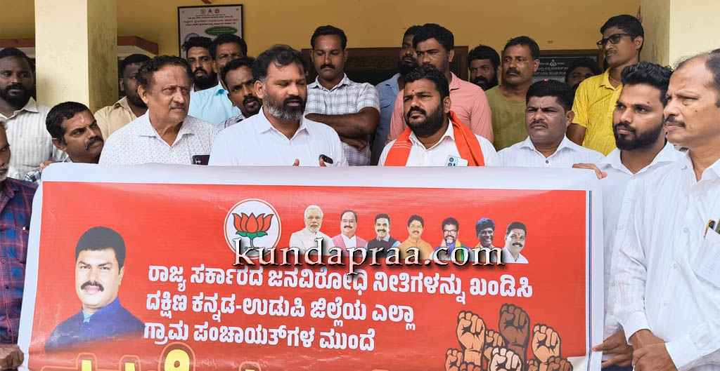 ಬೈಂದೂರು: ಬೈಂದೂರು ಮಂಡಲ ಬಿಜೆಪಿ ವತಿಯಿಂದ ಕ್ಷೇತ್ರದ ಎಲ್ಲಾ ಗ್ರಾಮ ಪಂಚಾಯತ್ಗಳ ಮುಂಭಾಗದಲ್ಲಿ ಕಾಂಗ್ರೆಸ್ ಸರ್ಕಾರದ ವಿರುದ್ಧ ಪ್ರತಿಭಟನೆ ನಡೆಯಿತು. ಕ್ಷೇತ್ರದ ಹಲವಾರು ಗ್ರಾಮ ಪಂಚಾಯತ್ಗಳ ಮುಂಭಾಗದಲ್ಲಿ ನಡೆದ ಈ ಧರಣಿ ಪ್ರತಿಭಟನೆಯಲ್ಲಿ ಬೈಂದೂರು ವಿಧಾನ ಸಭಾ ಕ್ಷೇತ್ರದ ಶಾಸಕ ಗುರುರಾಜ್ ಗಂಟಿಹೊಳೆ ಅವರು ಭಾಗಿಯಾದರು.