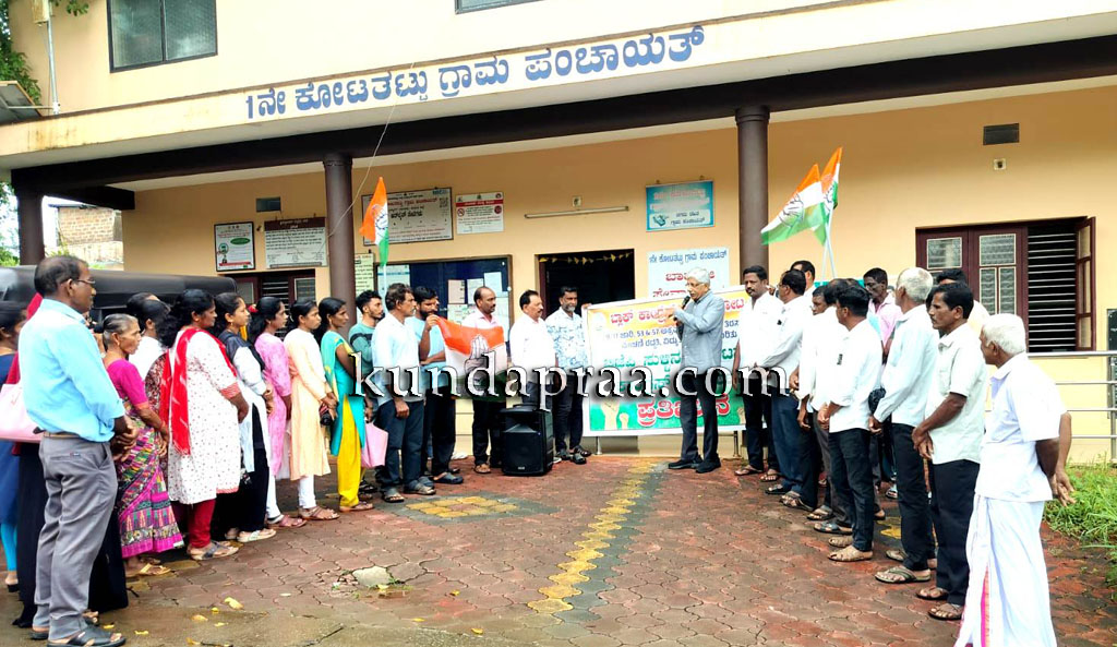 ಕೋಟ ಬ್ಲಾಕ್ ಕಾಂಗ್ರೆಸ್ ವತಿಯಿಂದ ಶನಿವಾರ ಕೋಟತಟ್ಟು ಗ್ರಾಮ ಪಂಚಾಯತ್ ಎದುರು ಪ್ರತಿಭಟನೆಯಲ್ಲಿ ಮಾಜಿ ಸಂಸದ ಕೆ.ಜಯಪ್ರಕಾಶ ಹೆಗ್ಡೆ ಮಾತನಾಡಿದರು. ಬ್ಲಾಕ್ ಕಾಂಗ್ರೆಸ್ ಅಧ್ಯಕ್ಷರಾದ ಶಂಕರ್ ಎ ಕುಂದರ್, ಕೋಟ ವ್ಯವಸಾಯಕ ಸಹಕಾರಿ ಸಂಘದ ಮಾಜಿ ಅಧ್ಯಕ್ಷ ತಿಮ್ಮ ಪೂಜಾರಿ, ಗ್ರಾಮೀಣ ಸಮಿತಿ ಅಧ್ಯಕ್ಷ ಸುರೇಶ್ ಪೂಜಾರಿ ಇದ್ದರು.