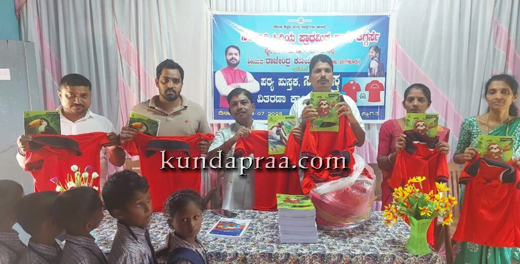 ಬೈಂದೂರು: ಇಲ್ಲಿನ ತಗ್ಗರ್ಸೆಯ ಸರಕಾರಿ ಹಿರಿಯ ಪ್ರಾಥಮಿಕ ಶಾಲೆಯ ವಿದ್ಯಾರ್ಥಿಗಳಿಗೆ ಬೆಂಗಳೂರಿನ ಉದ್ಯಮಿ ರಾಜೇಂದ್ರ ಕೋಡಿ ಅವರು ಪುಸ್ತಕ ಹಾಗೂ ಸಮವಸ್ತ್ರವನ್ನು ಬೈಂದೂರಿನ ಸುಬ್ರಹ್ಮಣ್ಯ ಬಿಜೂರು ಅವರ ಮುಖಾಂತರ ಈ ಕೊಡುಗೆಯನ್ನು ಶಾಲಾ ವಿದ್ಯಾರ್ಥಿಗಳಿಗೆ ಹಸ್ತಾಂತರಿಸಿದ್ದಾರೆ.