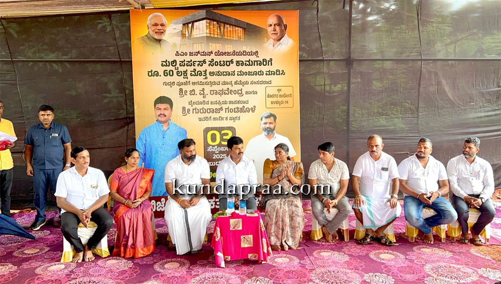 ಕುಂದಾಪುರ: ತಾಲೂಕಿನ ಬೆಳ್ಳಾಲ, ನಾಡ ಹಾಗೂ 74 ಉಳ್ಳೂರು ಗ್ರಾಮದಲ್ಲಿ “PMJANMAN” ಯೋಜನೆಯಡಿ ಸುಮಾರು ರೂ. 1.80 ಕೋಟಿ ಅನುದಾನದಲ್ಲಿ ನಿರ್ಮಿಸಲು ಉದ್ದೇಶಿಸಿರುವ “Multi Purpose Center (MPC)” ಕಾಮಗಾರಿಗಳಿಗೆ ಸಂಸದ ಬಿ.ವೈ ರಾಘವೇಂದ್ರ ಅವರು ಗುರುವಾರದಂದು ಶಂಕು ಸ್ಥಾಪನೆ ನೆರವೇರಿಸಿದರು.