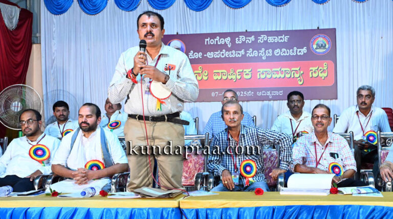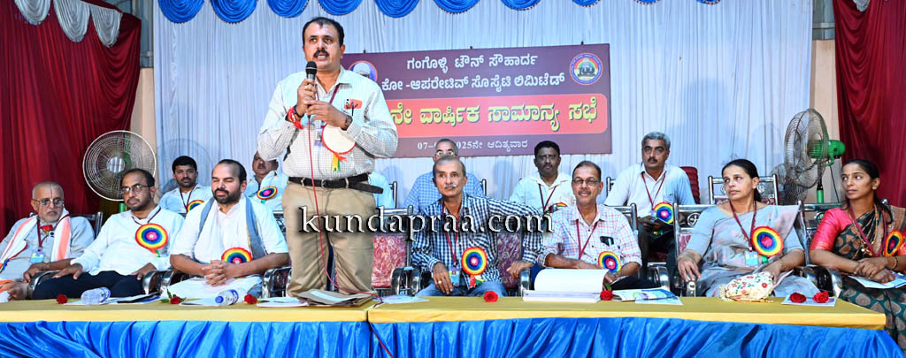 ಅವರು ಗಂಗೊಳ್ಳಿಯ ಶ್ರೀ ವೀರ ವಿಠಲ ಸಭಾಗೃಹದಲ್ಲಿ ಭಾನುವಾರ ಜರಗಿದ ಗಂಗೊಳ್ಳಿ ಟೌನ್ ಸೌಹಾರ್ದ ಸಹಕಾರಿಯ 105ನೇ ಸಾಮಾನ್ಯ ಸಭೆಯ ಅಧ್ಯಕ್ಷತೆ ವಹಿಸಿ ಮಾತನಾಡಿದರು.