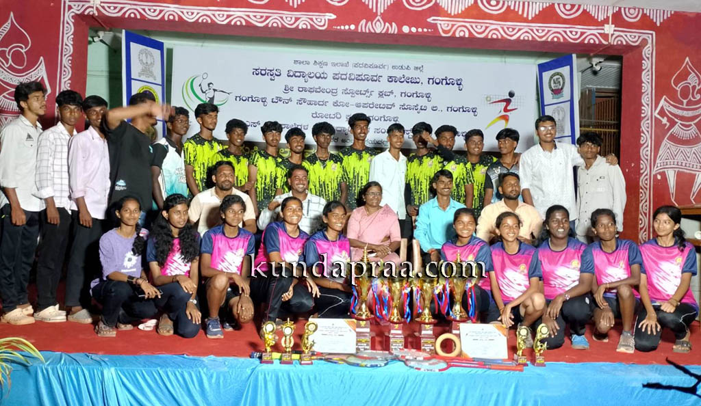 ಕುಂದಾಪುರ: ಶಾಲಾ ಶಿಕ್ಷಣ ಇಲಾಖೆ (ಪದವಿಪೂರ್ವ) ಉಡುಪಿ ಜಿಲ್ಲೆ, ಸರಸ್ವತಿ ವಿದ್ಯಾಲಯ ಪದವಿಪೂರ್ವ ಕಾಲೇಜು ಗಂಗೊಳ್ಳಿ, ಶ್ರೀ ರಾಘವೇಂದ್ರ ಸ್ಪೋರ್ಟ್ಸ್ ಕ್ಲಬ್ ಗಂಗೊಳ್ಳಿ, ಗಂಗೊಳ್ಳಿ ಟೌನ್ ಸೌಹಾರ್ದ ಕೋ-ಆಪರೇಟಿವ್ ಸೊಸೈಟಿ ಗಂಗೊಳ್ಳಿ, ರೋಟರಿ ಕ್ಲಬ್ ಗಂಗೊಳ್ಳಿ ಮತ್ತು ಎಸ್.ವಿ. ಶಾಲೆಗಳ ಹಳೆ ವಿದ್ಯಾರ್ಥಿ ಸಂಘ ಇವರ ಜಂಟಿ ಆಶ್ರಯದಲ್ಲಿ ಗಂಗೊಳ್ಳಿಯ ಎಸ್.ವಿ. ಪದವಿಪೂರ್ವ ಕಾಲೇಜಿನ ಕ್ರೀಡಾಂಗಣದಲ್ಲಿ ಗುರುವಾರ ನಡೆದ ಉಡುಪಿ ಜಿಲ್ಲಾ ಮಟ್ಟದ ಬಾಲ್ ಬ್ಯಾಡ್ಮಿಂಟನ್ ಮತ್ತು ಟೆನ್ನಿಕಾಯ್ಟ್ ಪಂದ್ಯಾಟ 2025-26ರ ಬಾಲ್ ಬ್ಯಾಡ್ಮಿಂಟನ್ನಲ್ಲಿ ಗಂಗೊಳ್ಳಿಯ ಎಸ್.ವಿ. ಪದವಿಪೂರ್ವ ಕಾಲೇಜು ತಂಡ ಹಾಗೂ ಕಾರ್ಕಳ ಶ್ರೀ ಭುವನೇಂದ್ರ ಕಾಲೇಜು ತಂಡ ಕ್ರಮವಾಗಿ ಹುಡುಗರ ಮತ್ತು ಹುಡುಗಿಯರ ವಿಭಾಗದಲ್ಲಿ ಜಯಗಳಿಸಿ ರಾಜ್ಯ ಮಟ್ಟಕ್ಕೆ ಆಯ್ಕೆಯಾಗಿದ್ದಾರೆ.